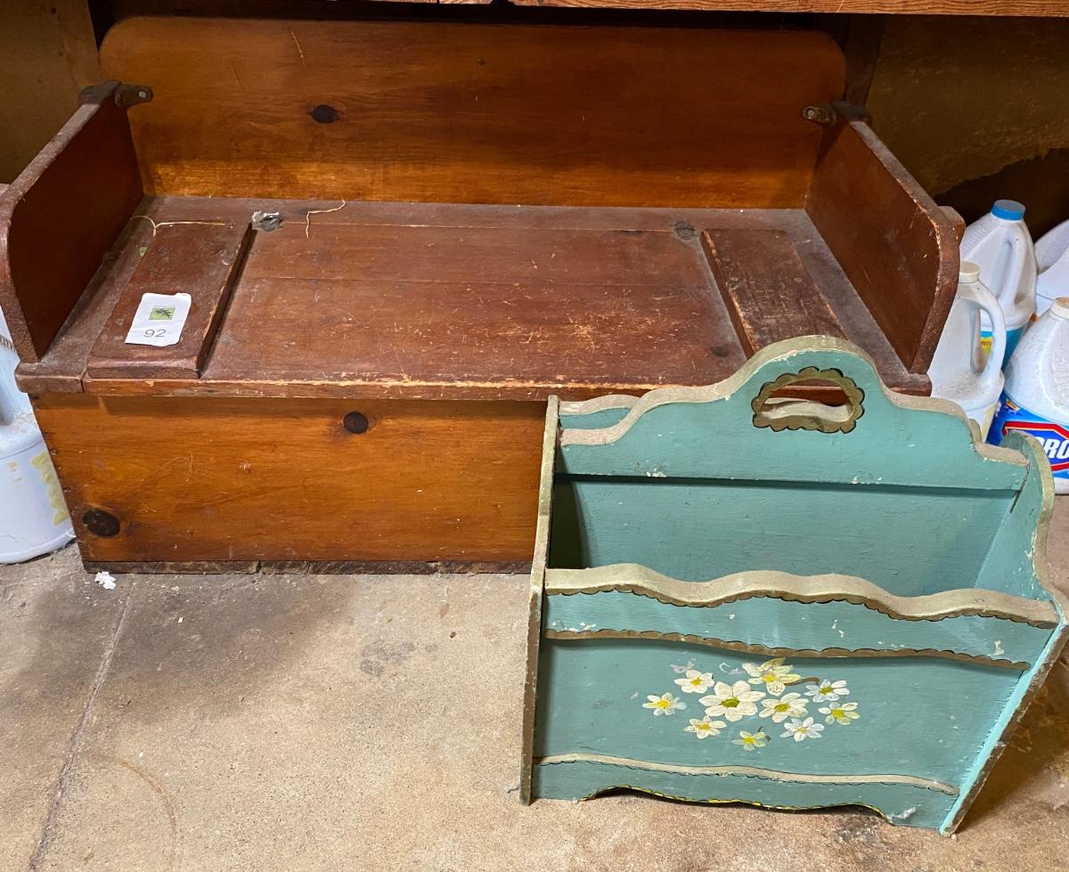 Vintage wooden toy chest and magazine rack