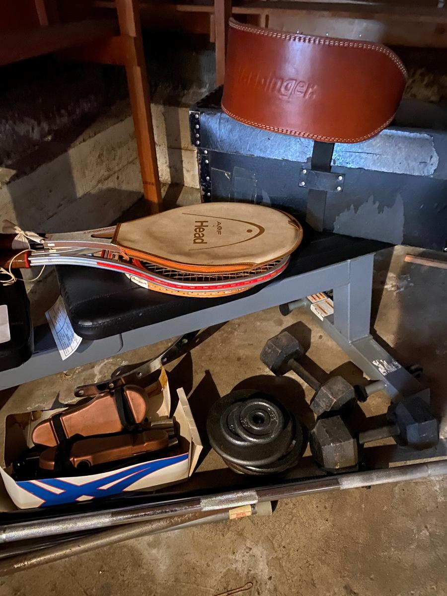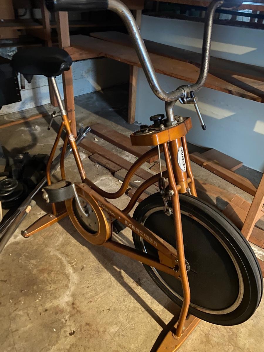 Weightlifting bench, vintage Schwinn Exerciser, and more