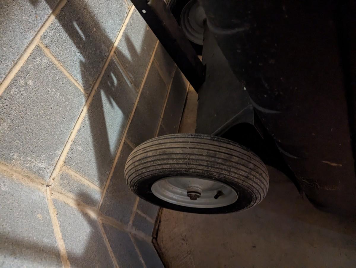 The tires are flat, also this item is around back and you will not be able to drive on the grass to get it.