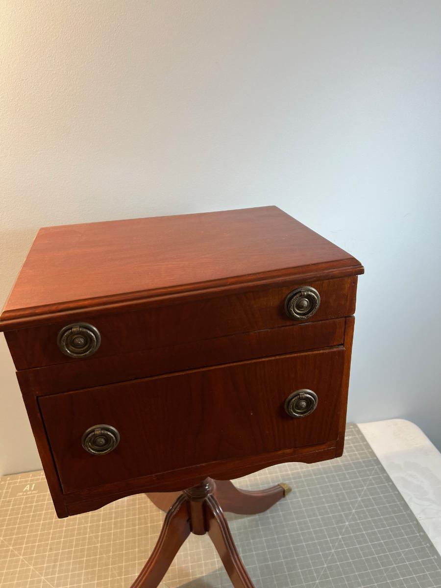 It was refinished at some point. 12 x 16 x 26. CUTE! Works. Working Condition.