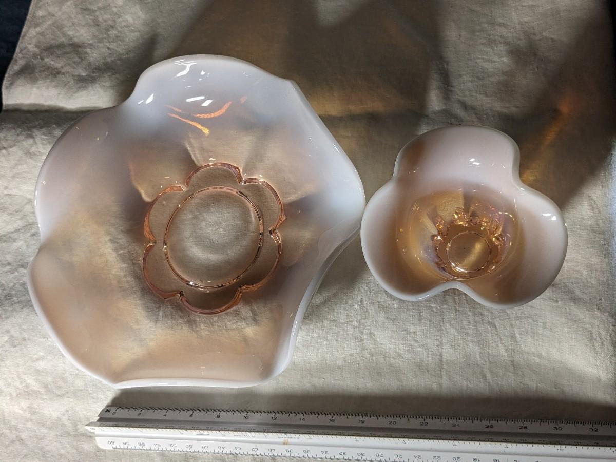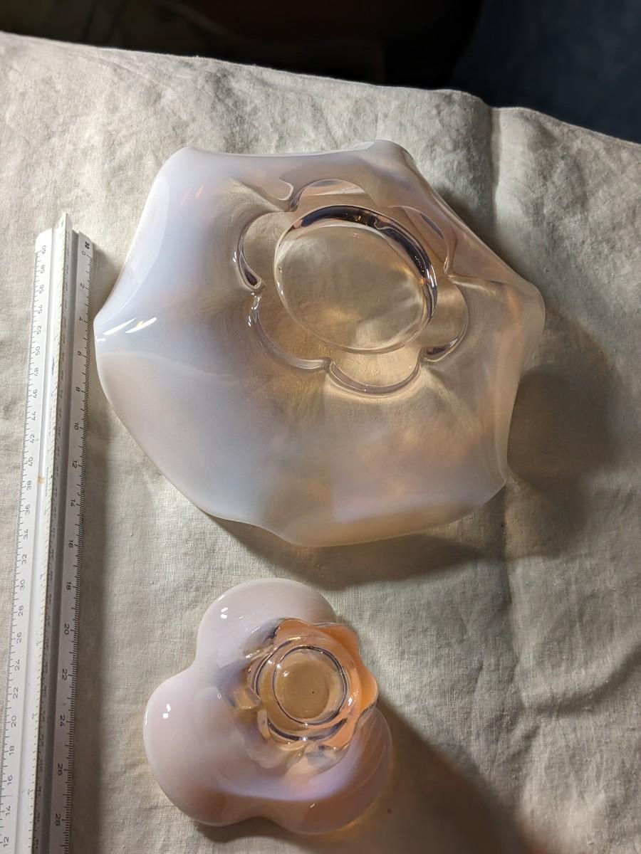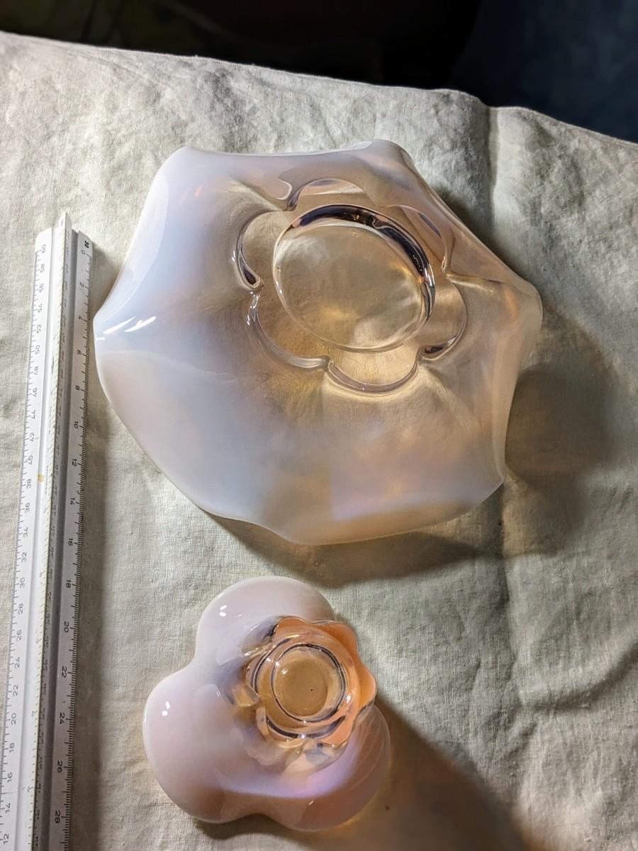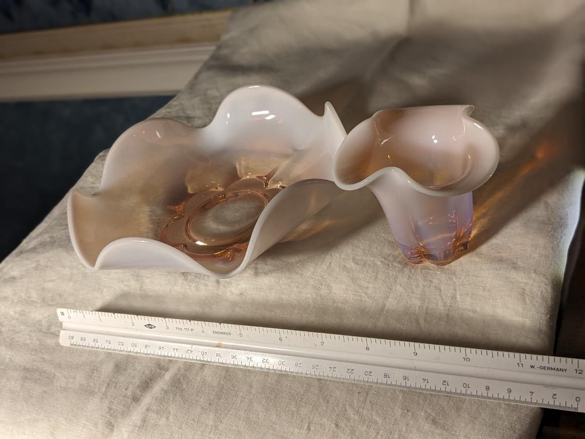Duncan Miller Canterbury Opalescent Pink Petal Glass Bowl & Vase