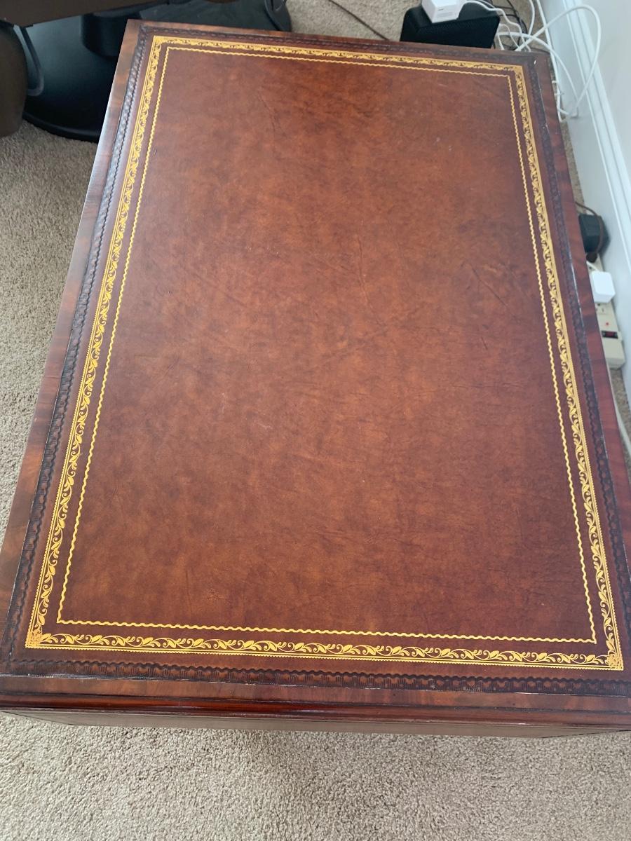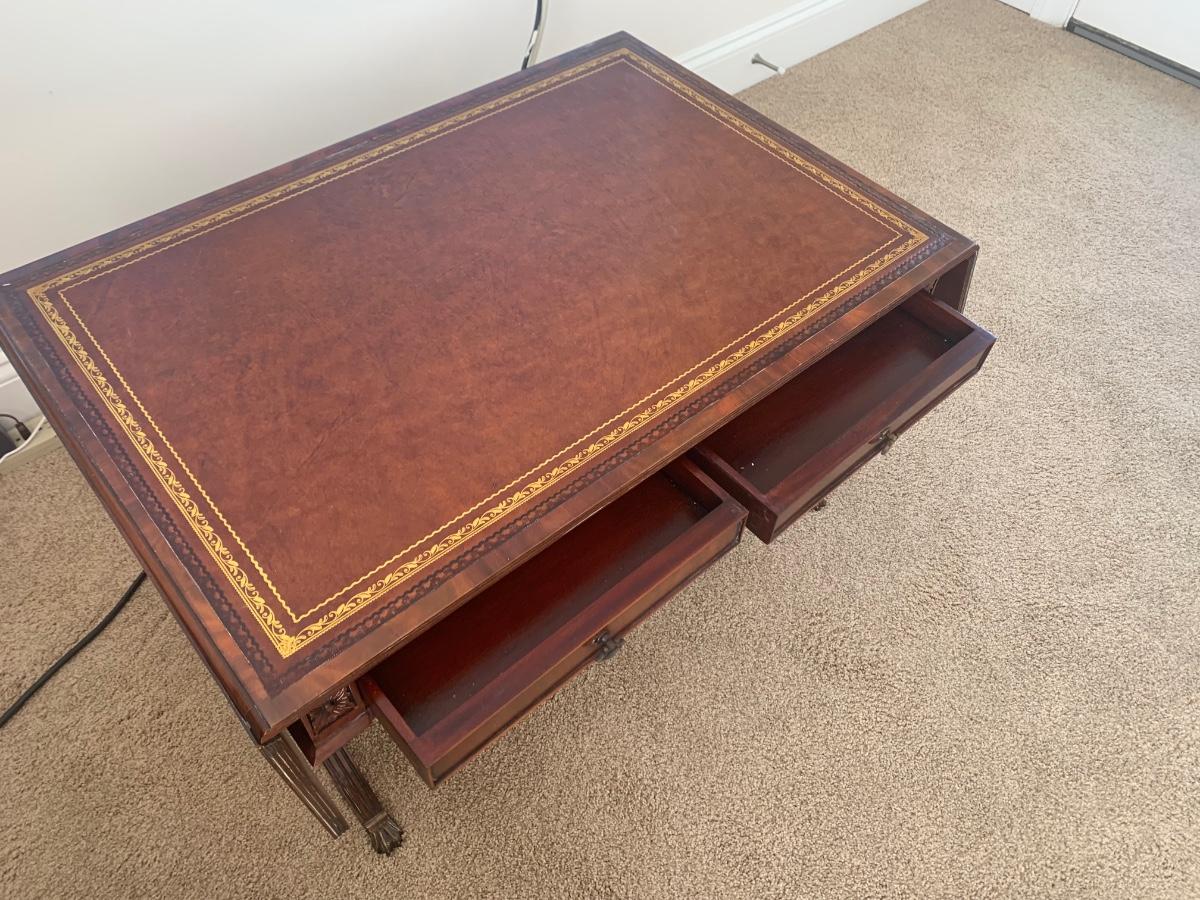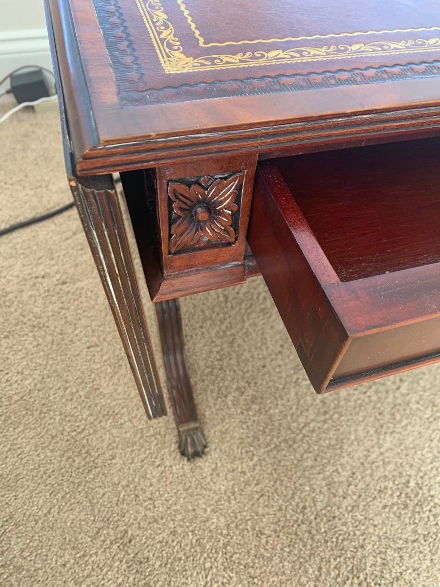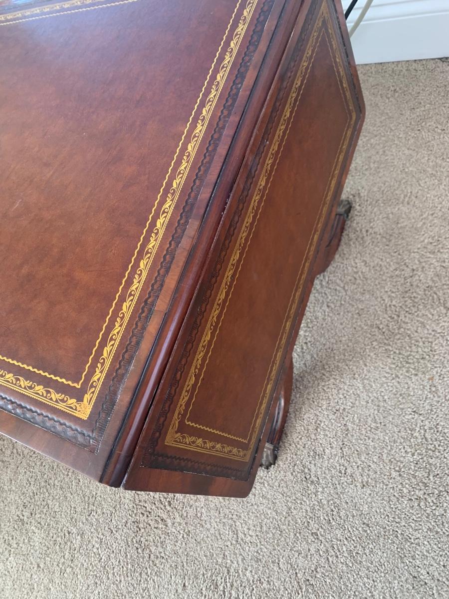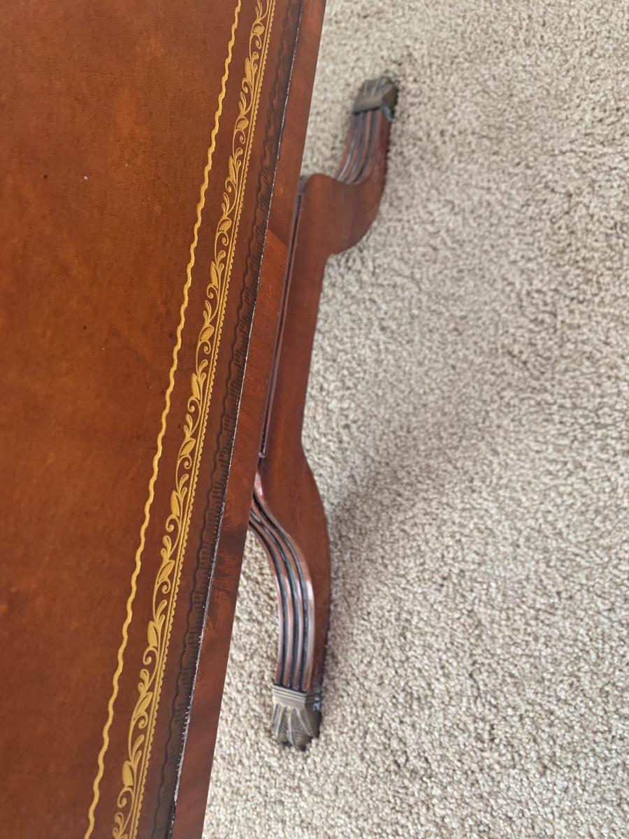 Duncan Phyfe Leather Top Drop Leaf Coffee Table