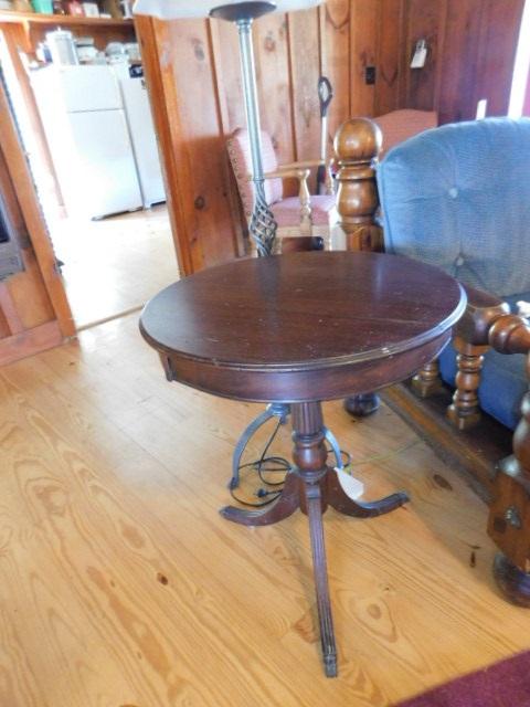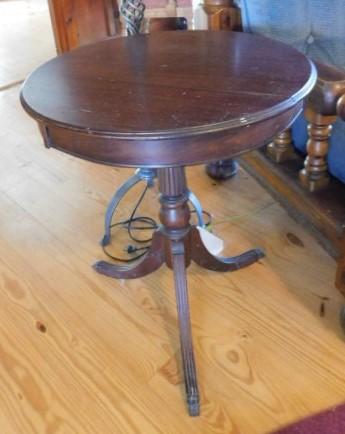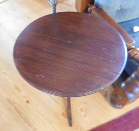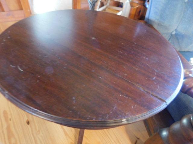 Duncan Phyfe Mahogany Round Lamp Table expect some scratches or wear. A dry crack shows on surface of table top as shown