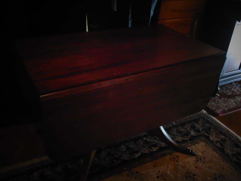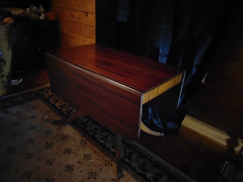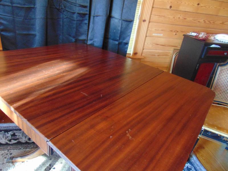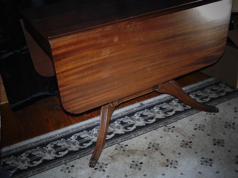 Great size table could be used to seat 4 for nice dining experience or used closed for side table.Has some rough spots on top can be refinished to bring it back to original beauty.