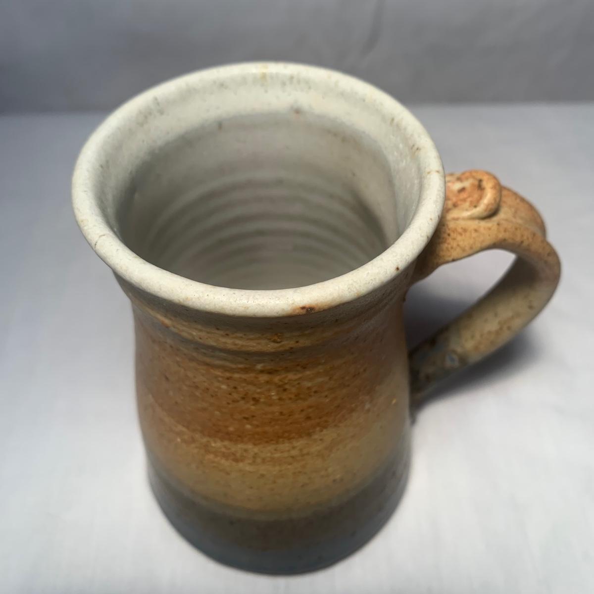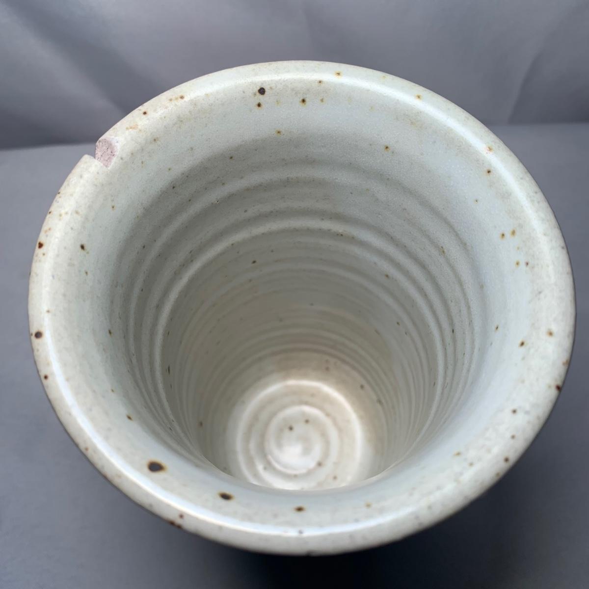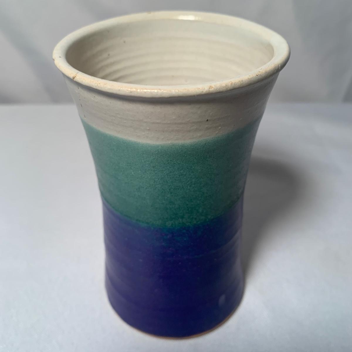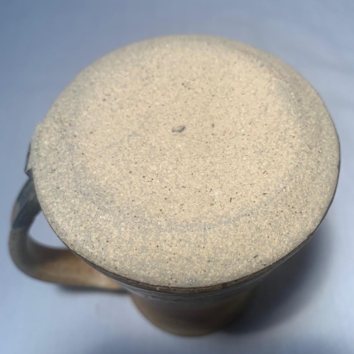 Lot includes four unsigned pieces of pottery. Use them as cups or flower holders! Larger piece measures 3.5”D x 6”H and has a small chip on the rim. Otherwise all items are in good condition. Please see photos for details. Lot also includes two mugs. One unsigned and one has a stamp. See photos for details.
