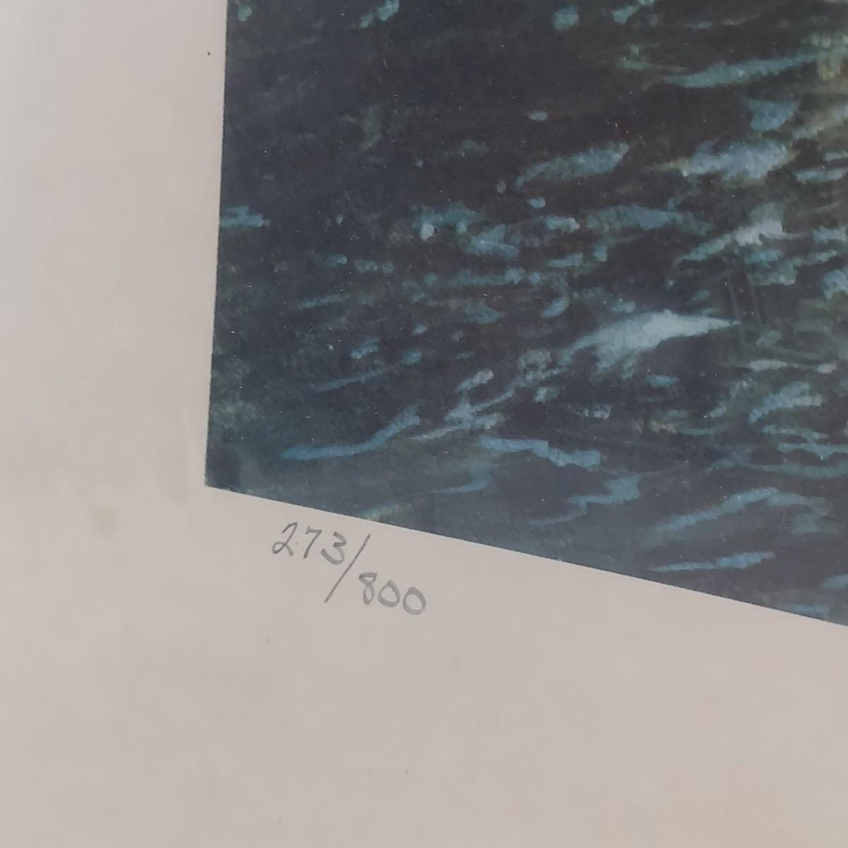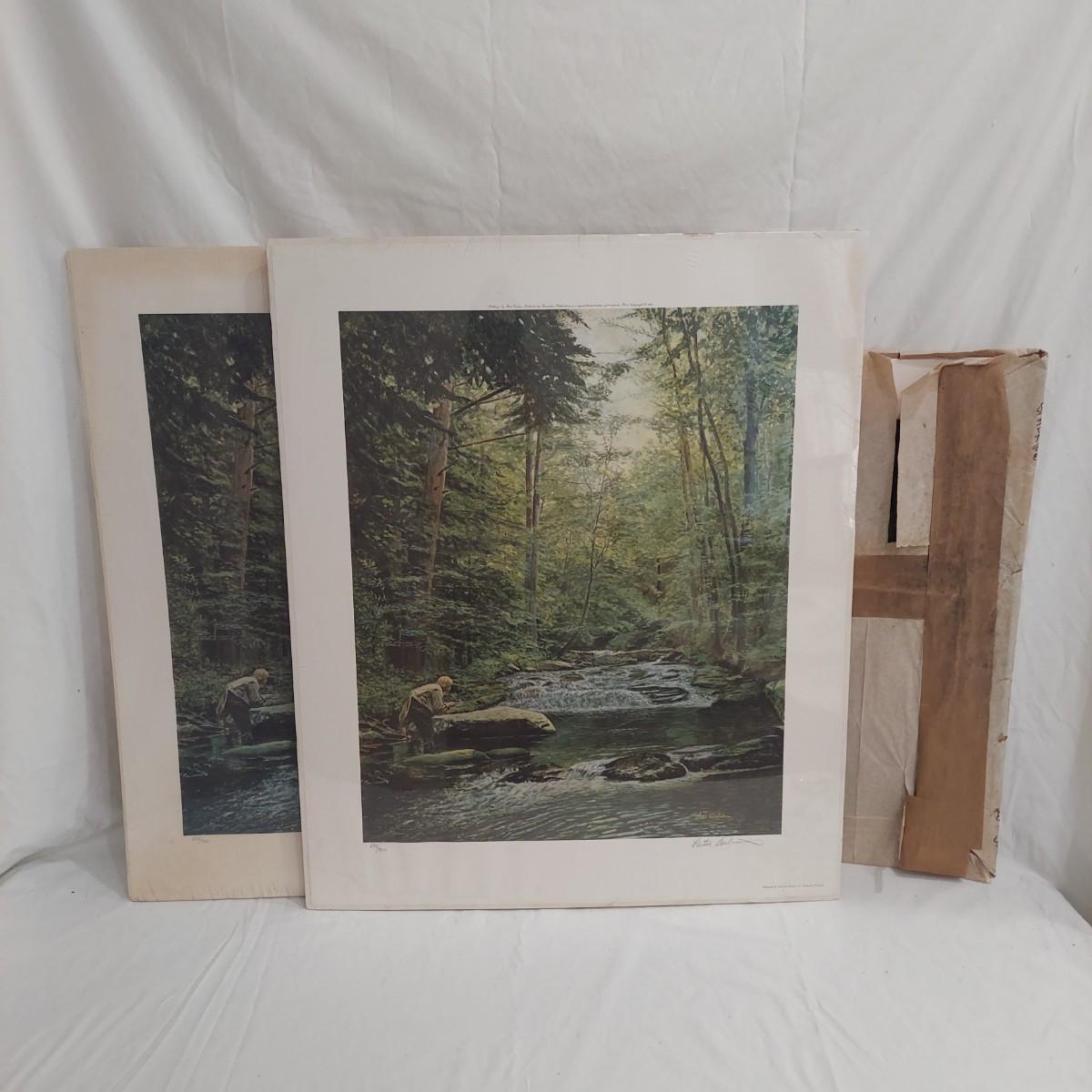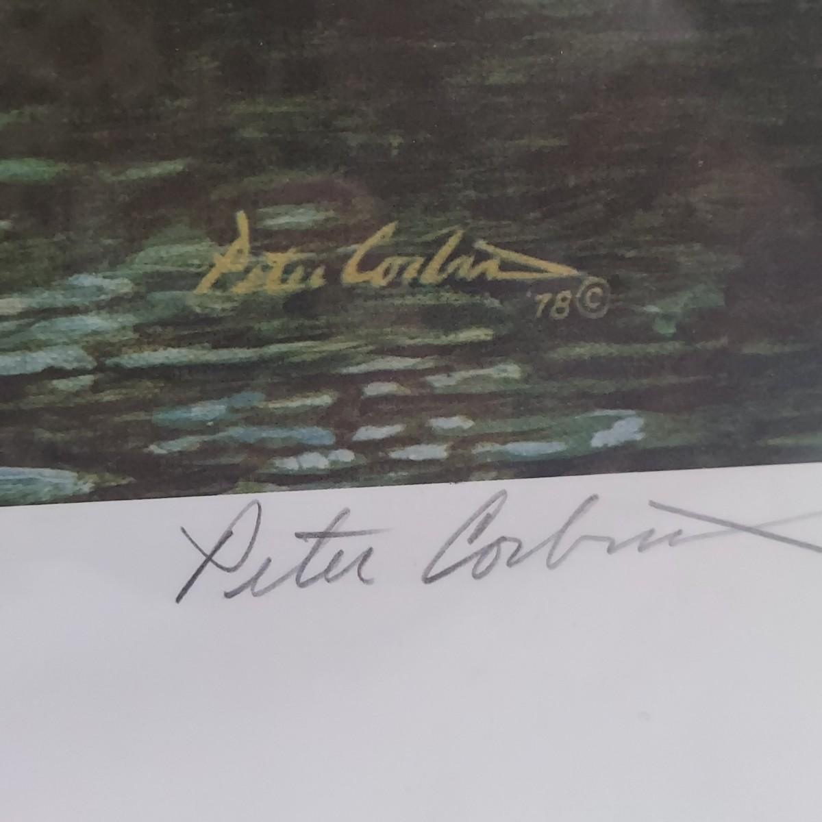 Lot includes six duplicate signed and numbered prints of “Stalking” by Peter Corbin. Two prints are sealed in plastic on foam boards. Four prints are loose. They measure approximately 24” x 29"H. Some condition issues. Please see photos for details. Shipping available