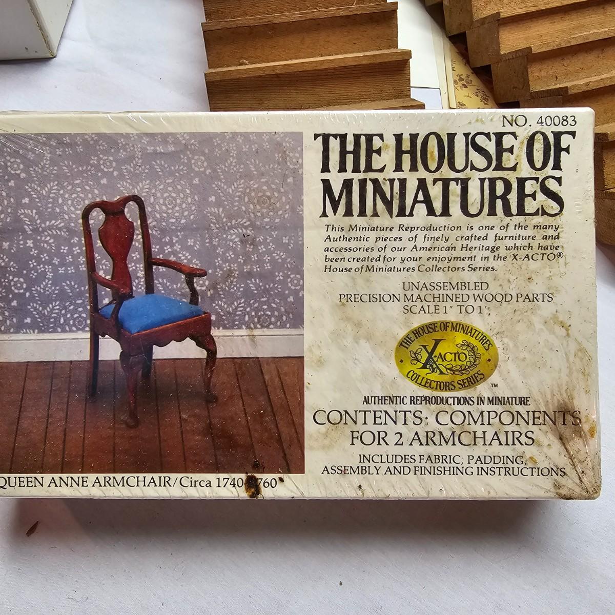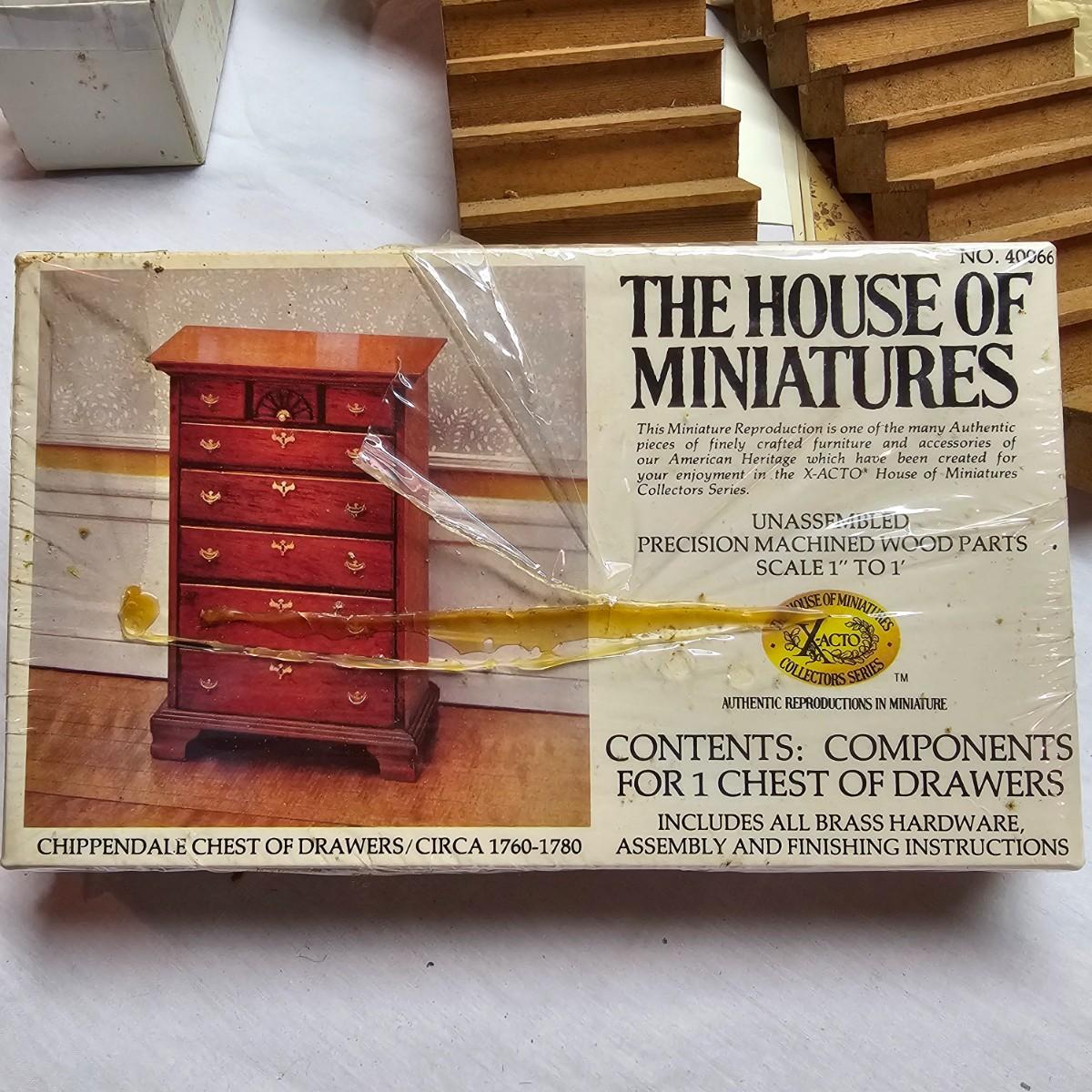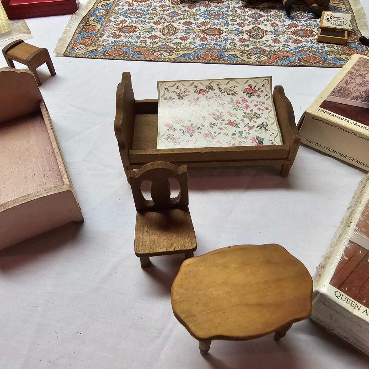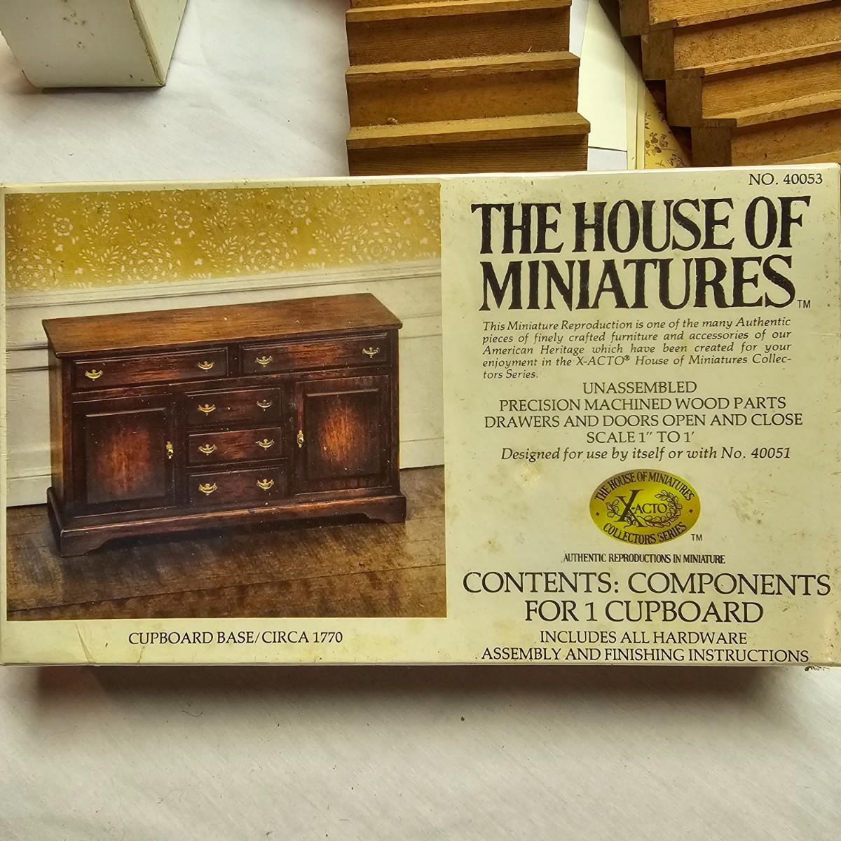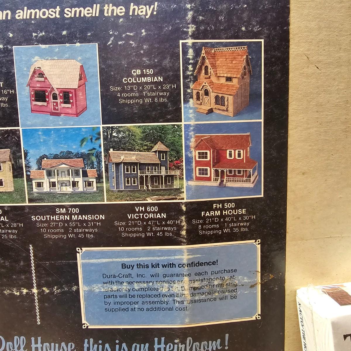 Boxed farm house kit by Dura Craft. Box still has staples in it, has never been opened. House measures 21" x 40" x 30"H. Last also includes several items of pre-made furniture and 18 boxed The House of Miniatures furniture kits to build. Additional supplies also included. The age of the liquids are unknown and we cannot verify contents. See photos for details. Local pickup only.