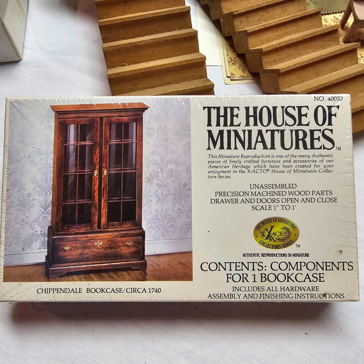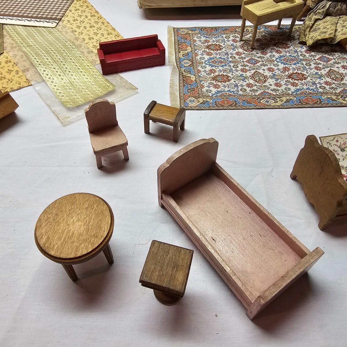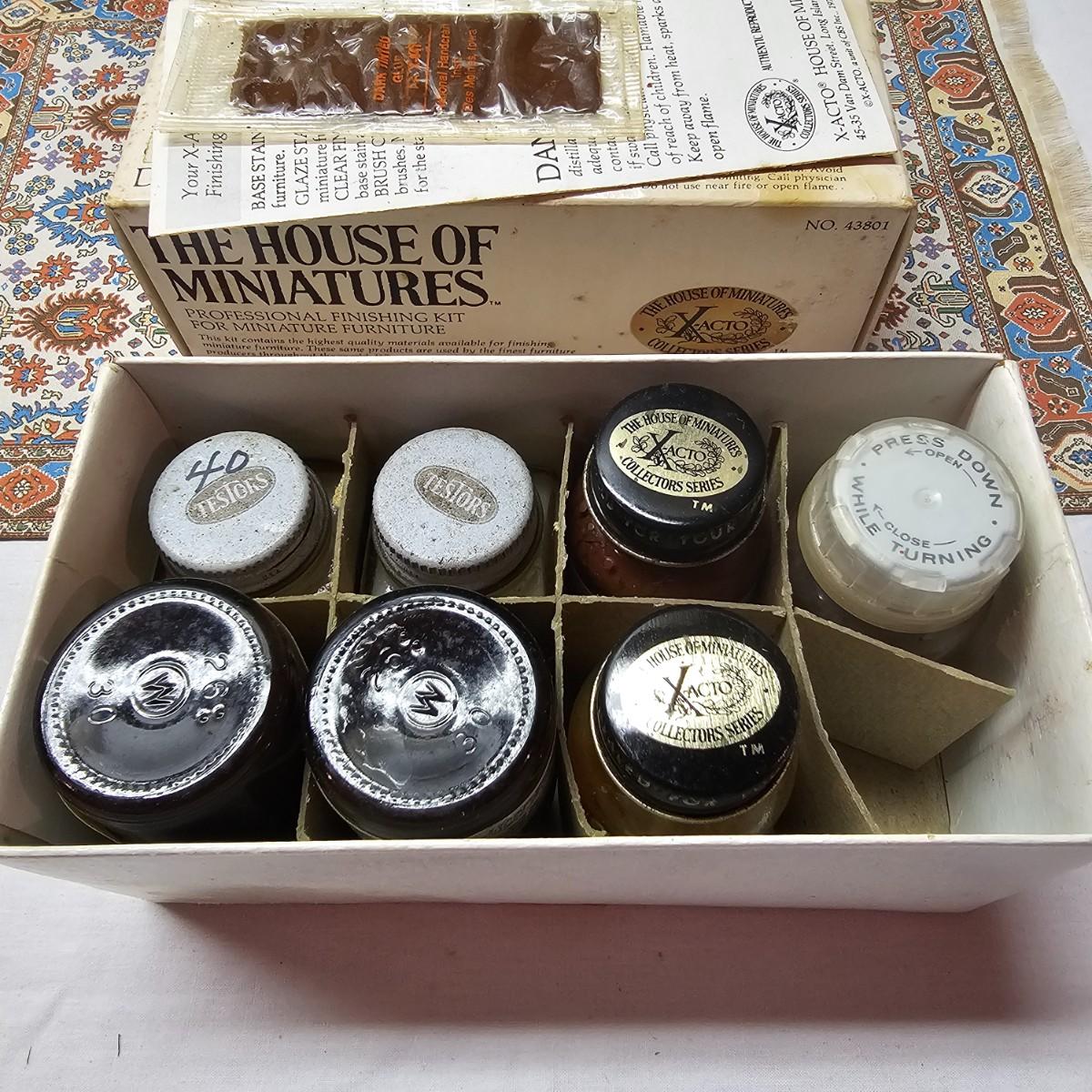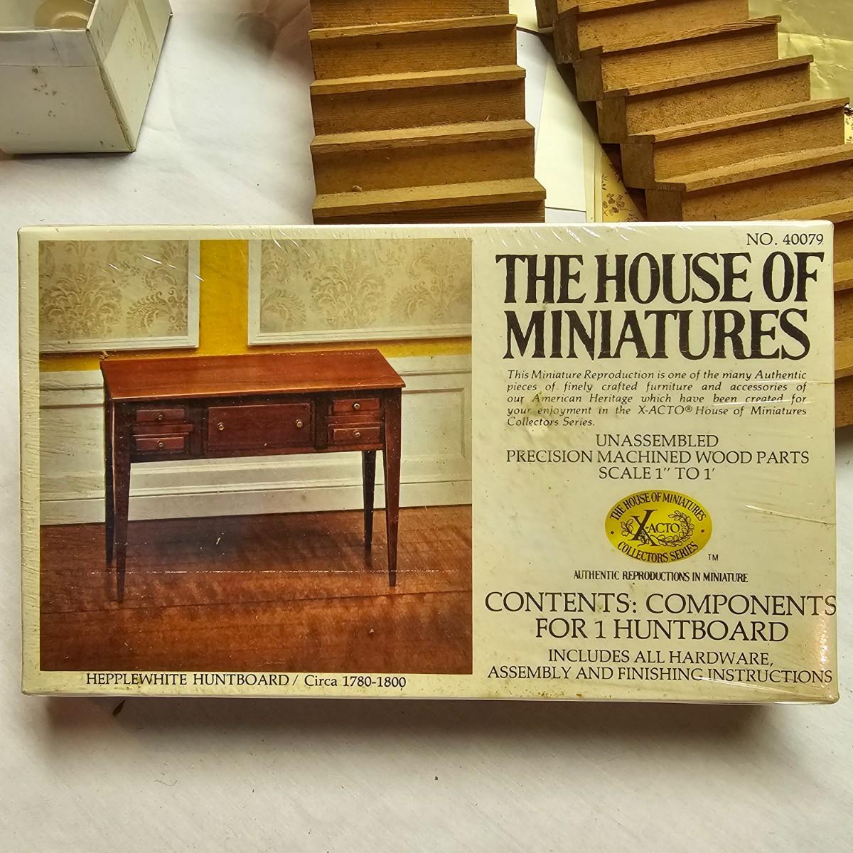 Boxed farm house kit by Dura Craft. Box still has staples in it, has never been opened. House measures 21" x 40" x 30"H. Last also includes several items of pre-made furniture and 18 boxed The House of Miniatures furniture kits to build. Additional supplies also included. The age of the liquids are unknown and we cannot verify contents. See photos for details. Local pickup only.