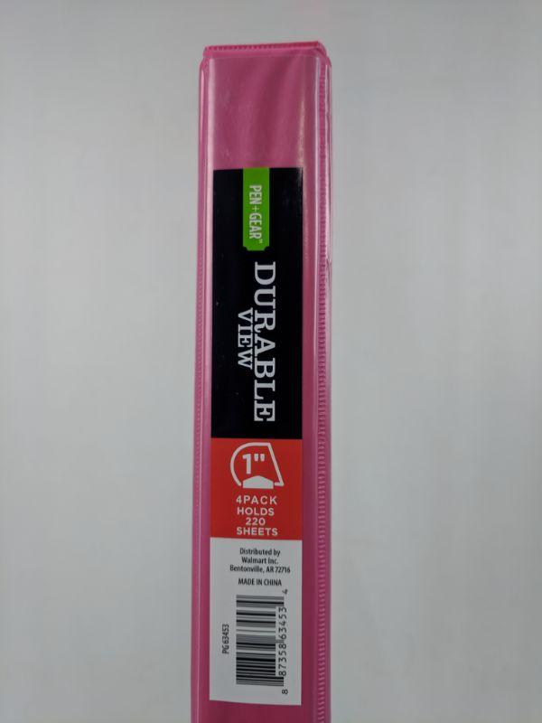 Durable View Pink 1" Binders, Pack of 5, Holds 220 Sheets - New