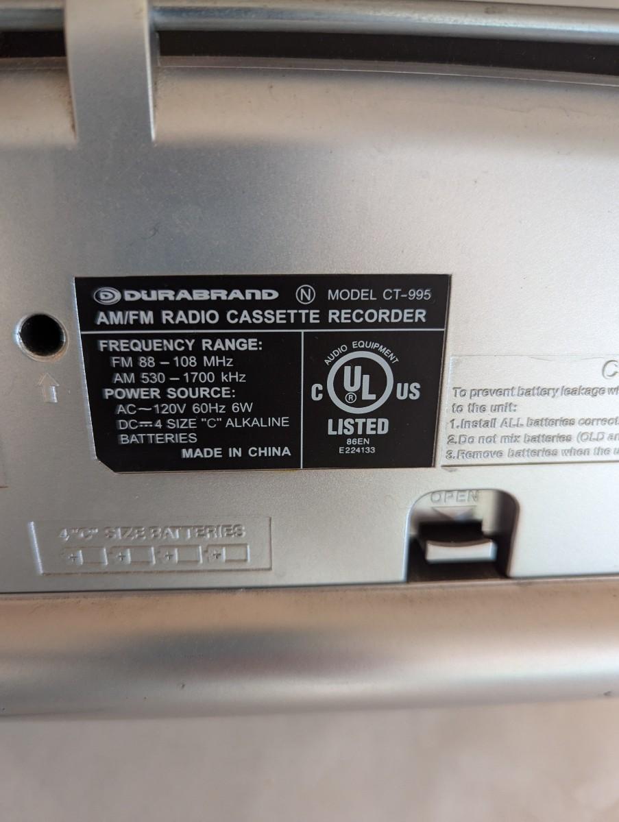 Durabrand AM/FM Radio Cassette Recorder Model CT-995