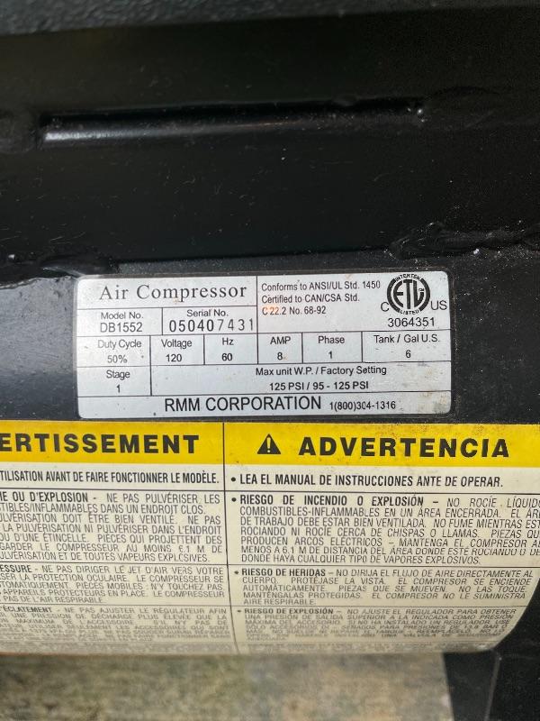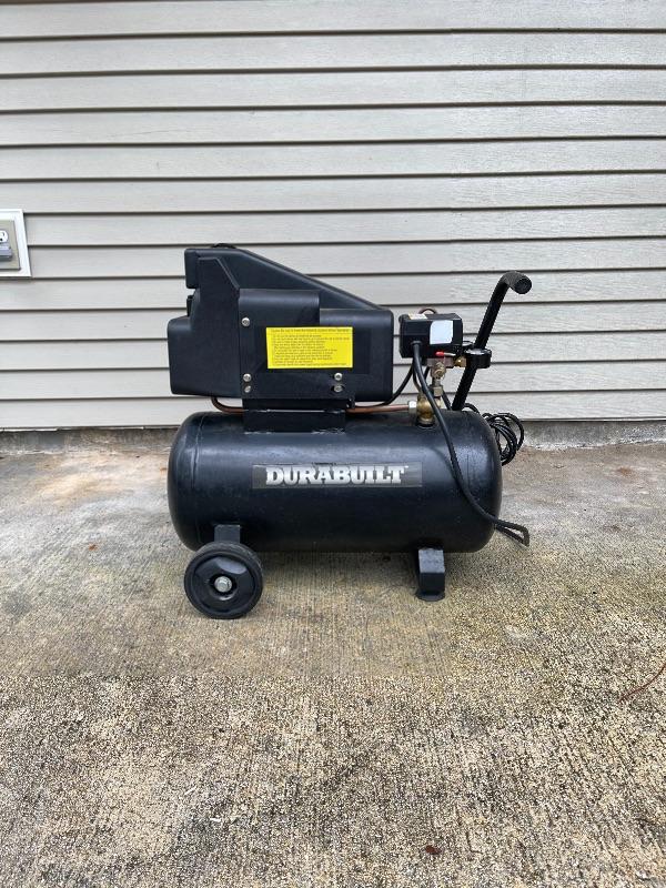 DURABUILT Air Compressor. H 22” x W 23” x D 13.5”