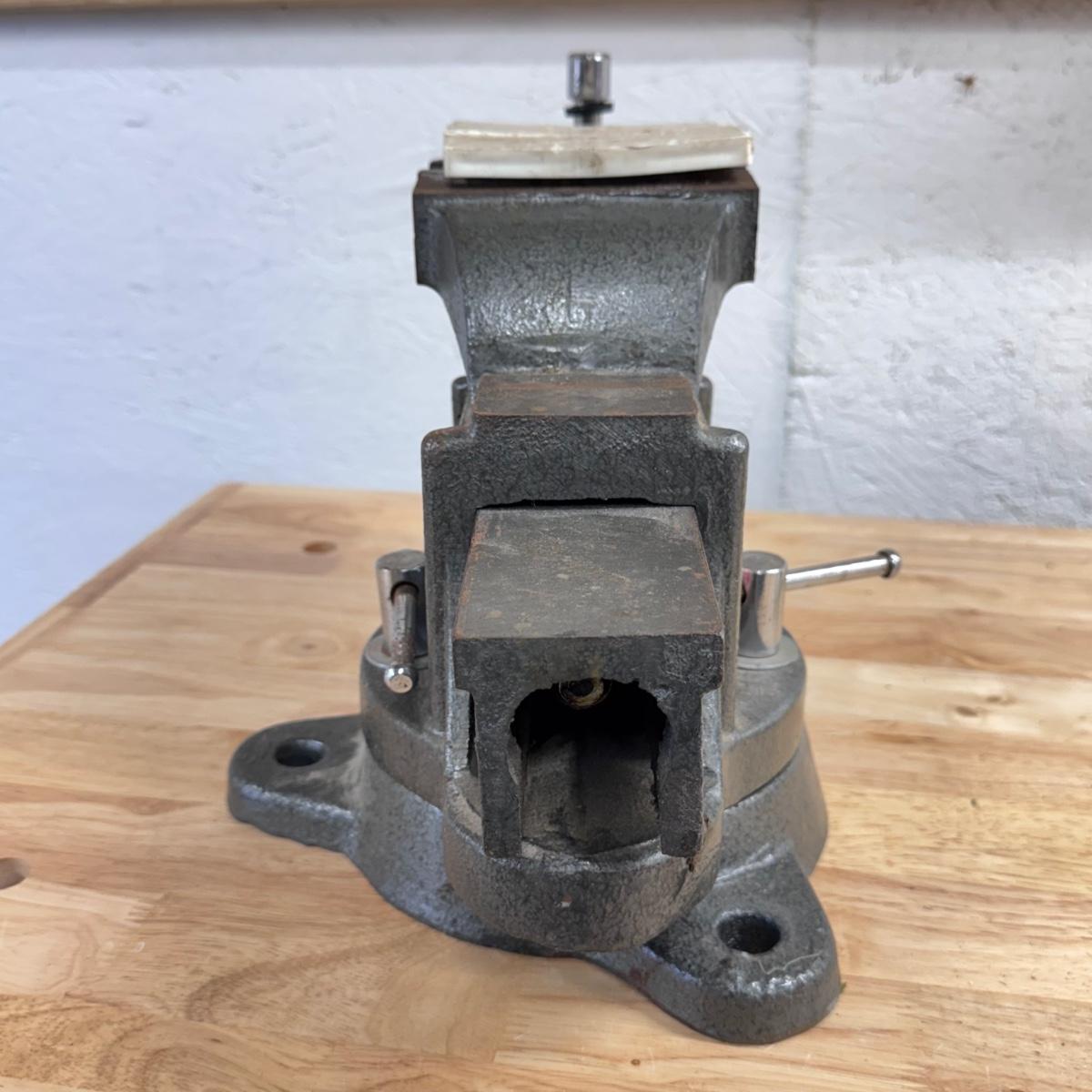 This lot includes one Duracraft heavy duty bench vise with a few hardware pieces. The vise measures 14.5” x 8” x 9”H. Local pickup only