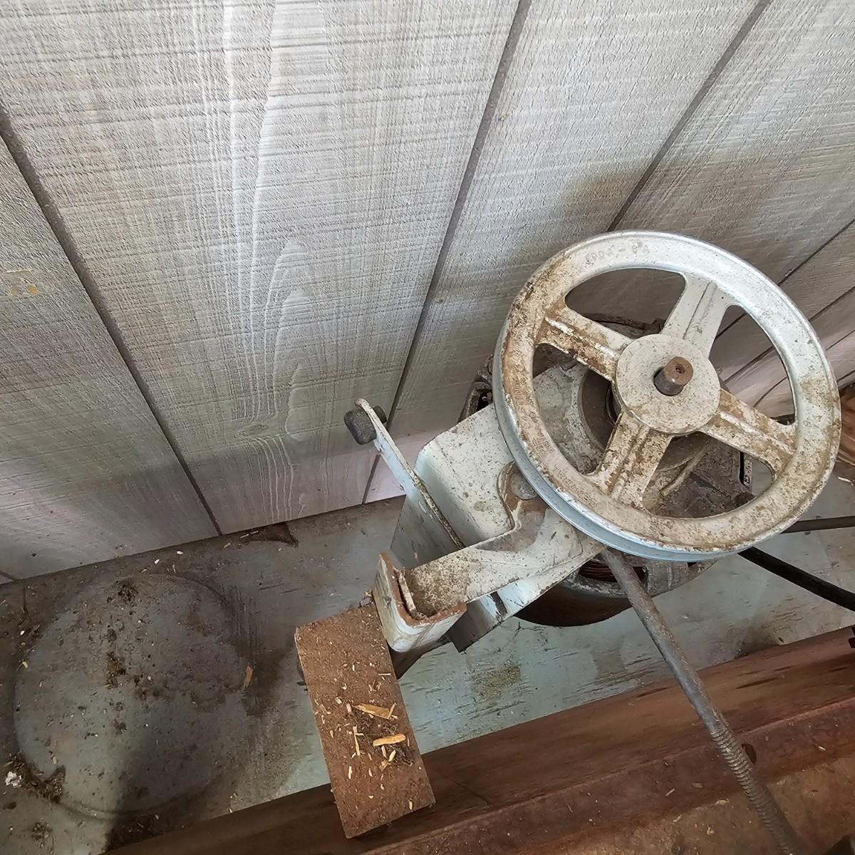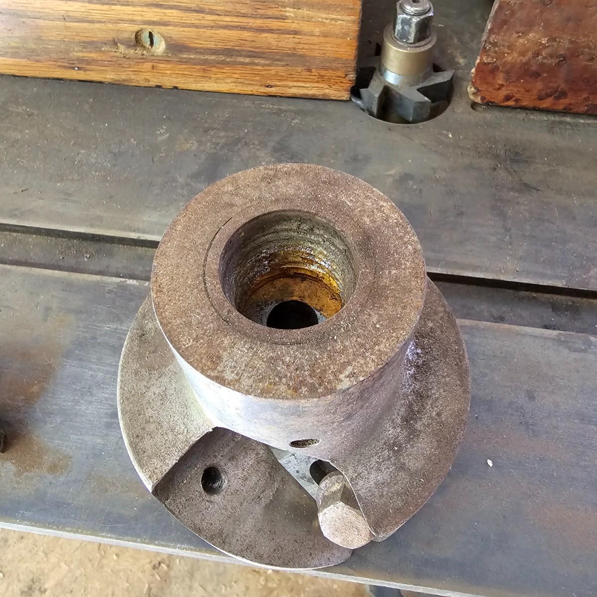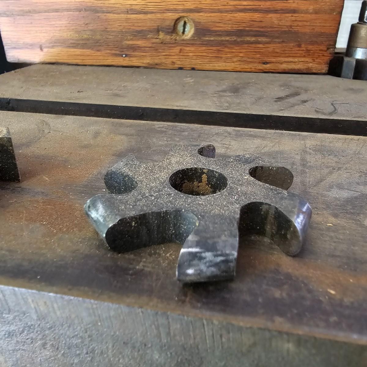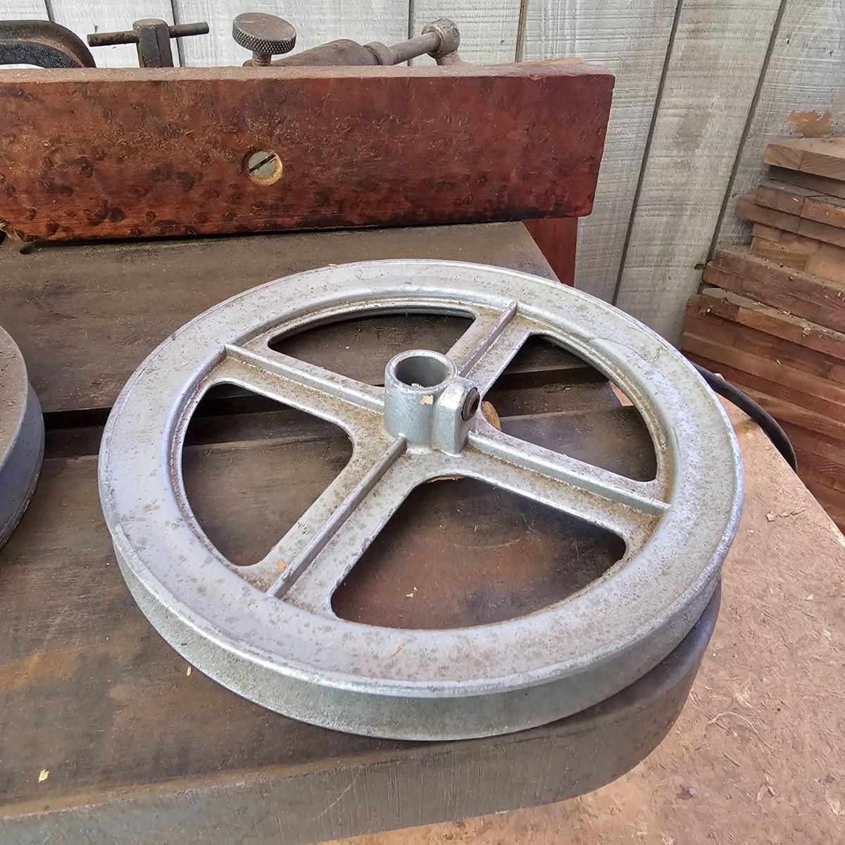 Tabletop router base by Duro Metal Products. Unit has 18" wide table top with slot for guide piece, comes with an assortment of different size and style cutters including one designed to round over large pieces for timber furniture. (Does not attach to this machine). Machine is not currently bolted to table but has attachment bolts in place. Table must be taken with machine. Motor on back has adjustment for belt tension, but no belt included. Motor powered on when plugged in. Overall measures 34" x 31" x 37" H. Includes three 6" pulley spindles, two singles and a four step piece. See photos for details.