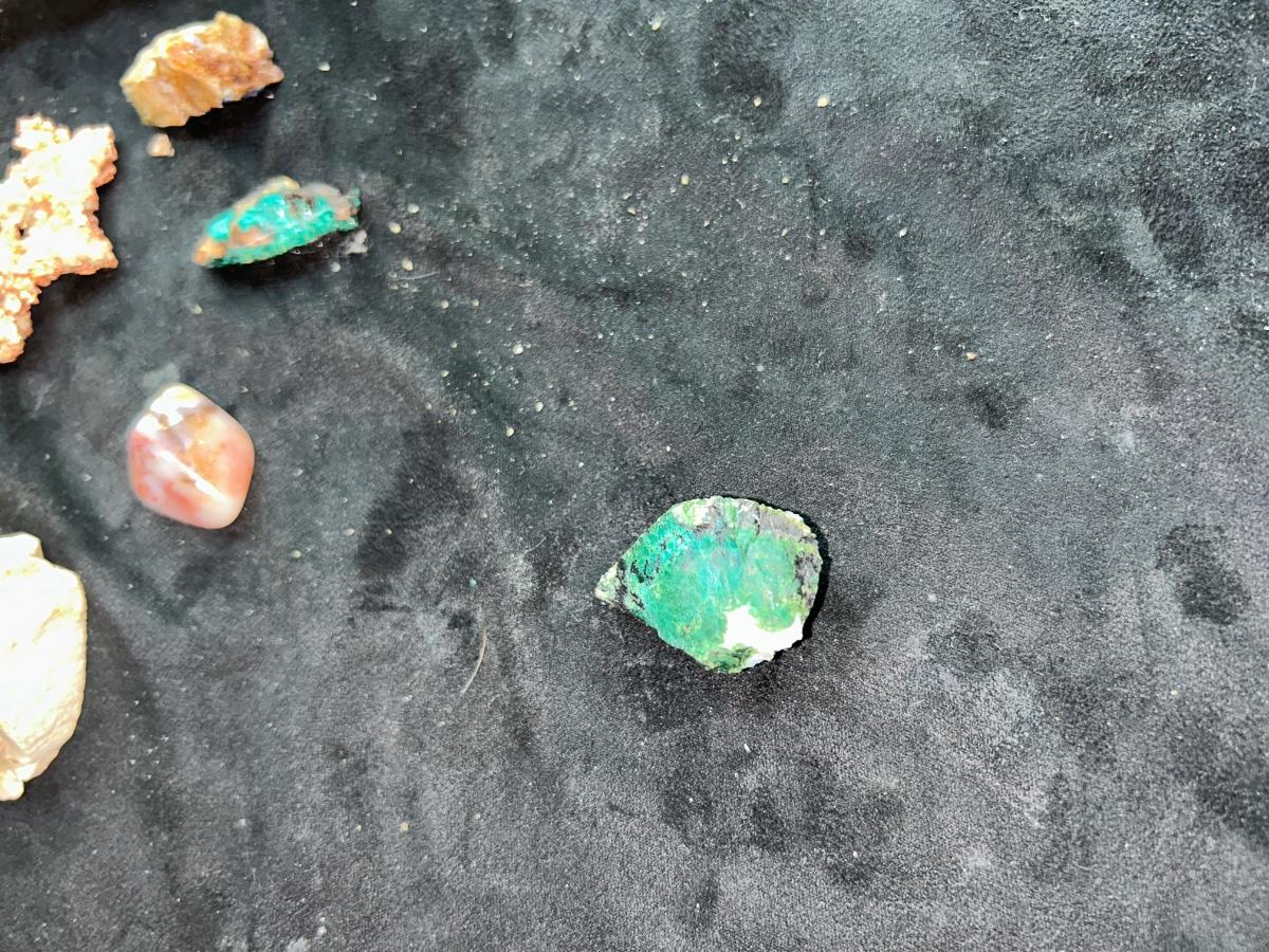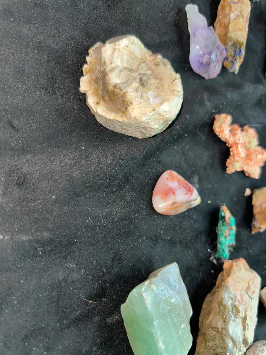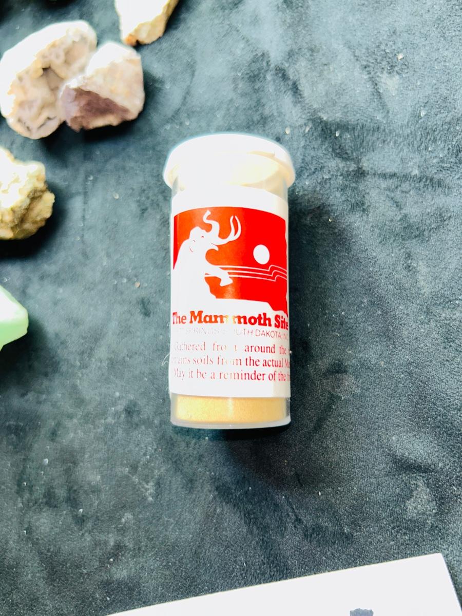 DUST FROM AROUND AN ACTUAL MAMMOTH FOSSIL SIGHT, RAW COPPER STONE, AMETHYST, CHRYSOCOLLA CRYSTAL, WHITE QUARTZ CRYSTAL, AND MORE AMAZING MINERALS!