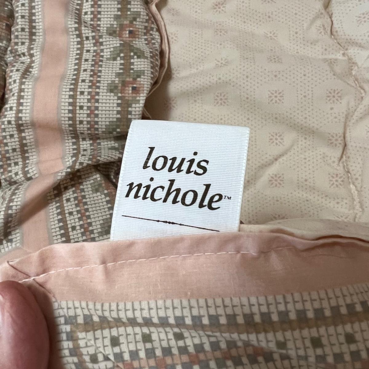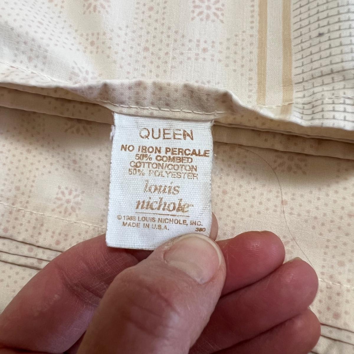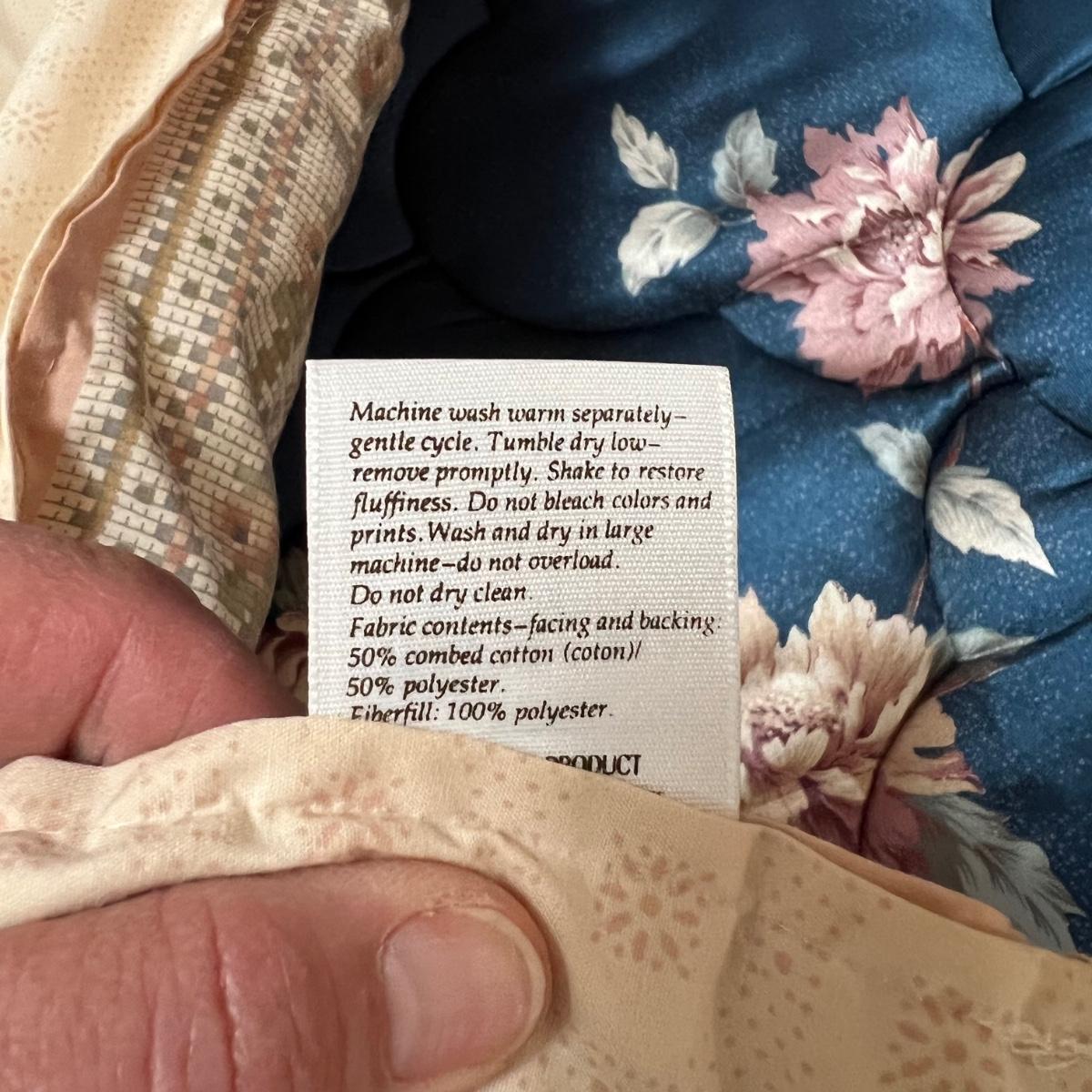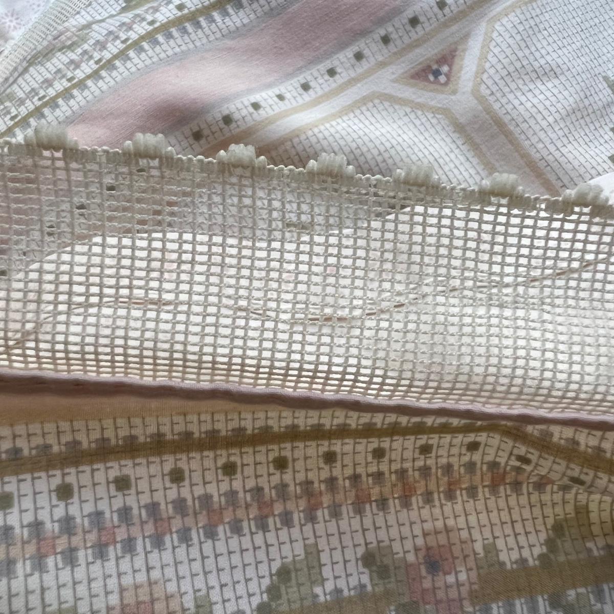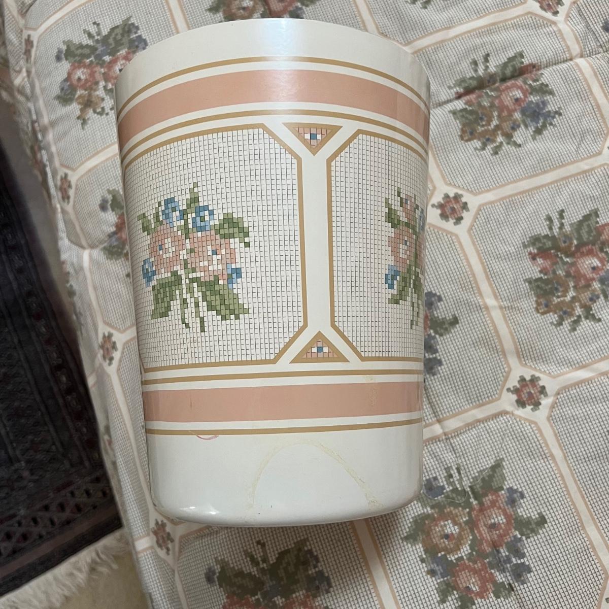 Lovely lace, pink and sage cross stitch-like printed design. Set includes two flat sheets, two fitted sheets, and four standard pillowcases. Additionally set includes box tIssue box cover, waist Can, bed skirt and two curtain panels with valances. Each curtain panel is 84”H x 64”W and each valance is 88“x 17.5“. Items appear to be in good condition with the exception of a small cleanable stain on the trashcan and a sticker marking on the top of the tissue holder. Inside of trash can could use a good cleaning and a small stain on comforter appears to be likely cleanable as well. Please note, bedframe and pillows in photo are not included. Local pickup only.