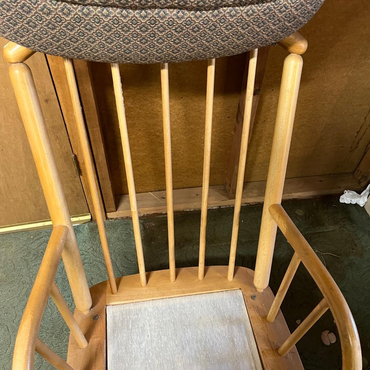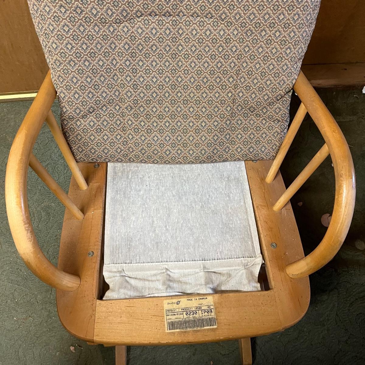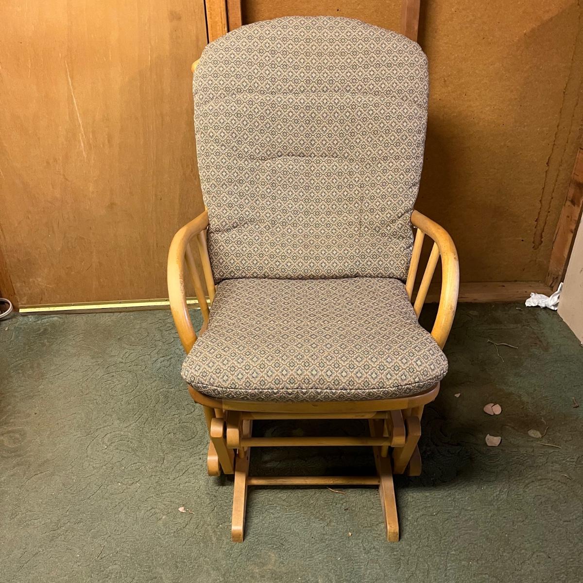 Lot includes a Dutailier glider rocker with padded cushions. Rocker measures 24” x 35” x 38” with a 20” seat height.