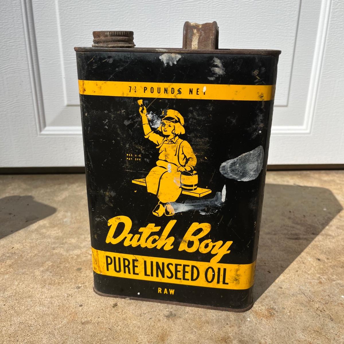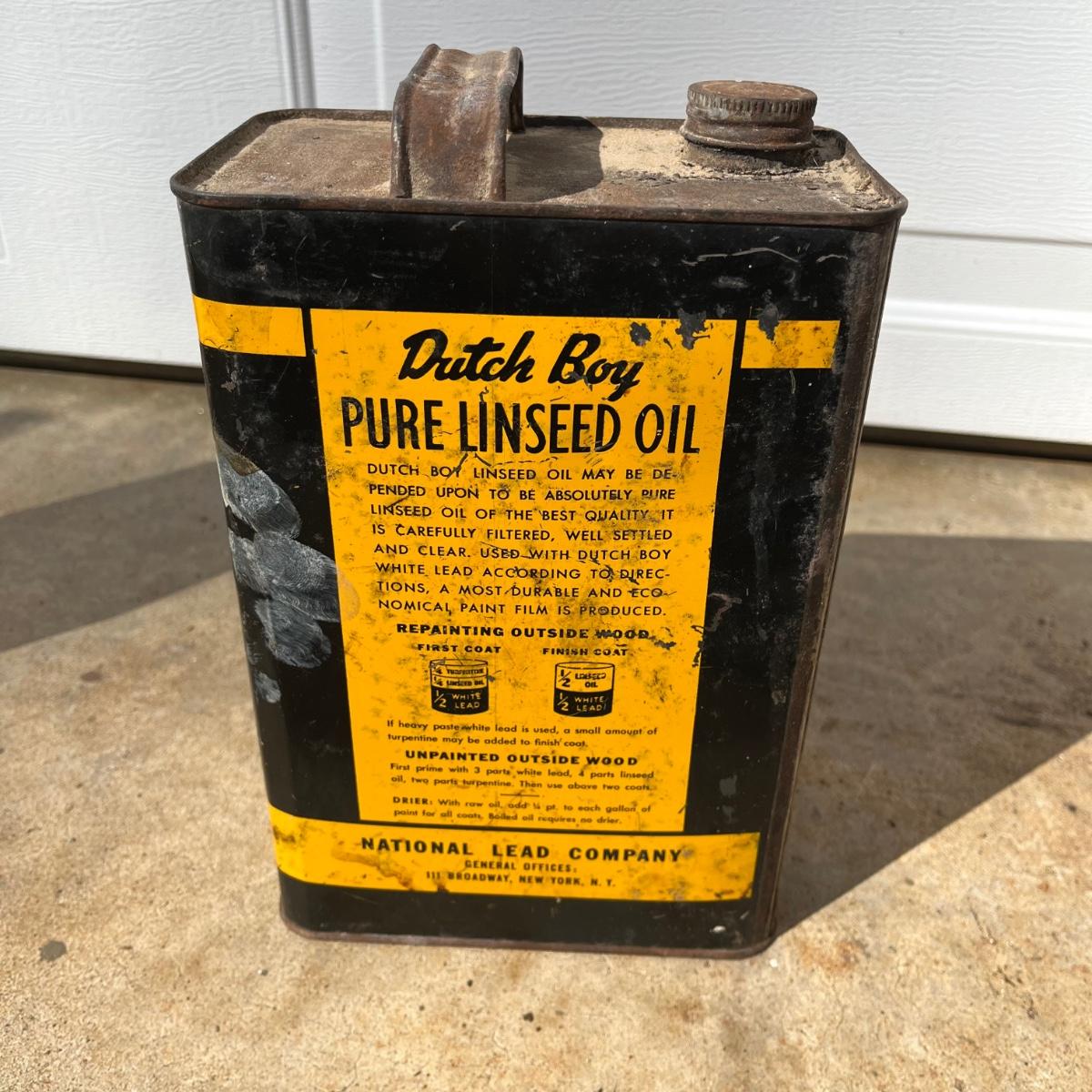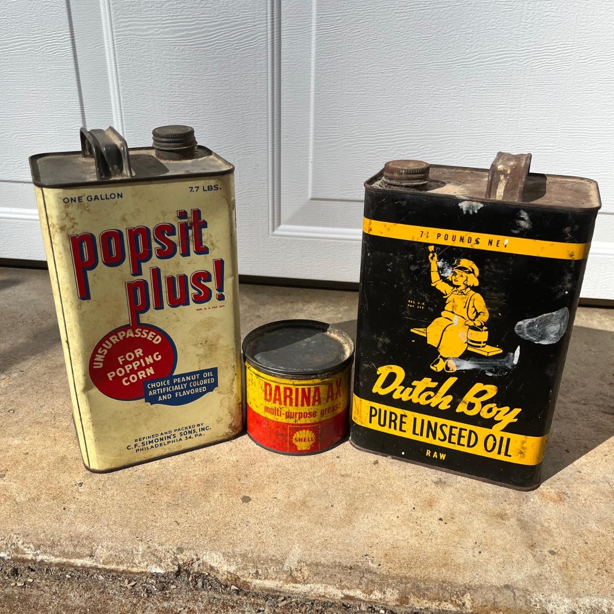 Lot includes a Dutch Boy pure linseed oil can, Popsit Plus one gallon can and a Darina ax Multi purpose grease can. Cans have scratches and dents.