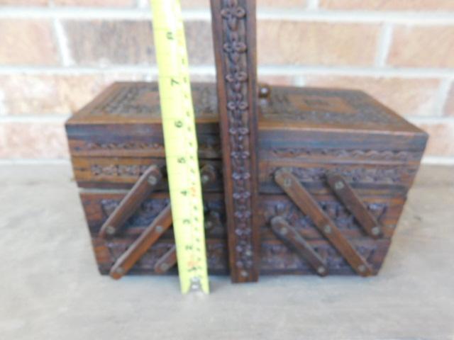 Dutch Hand Carved Accordian Sewing Box 9.5"