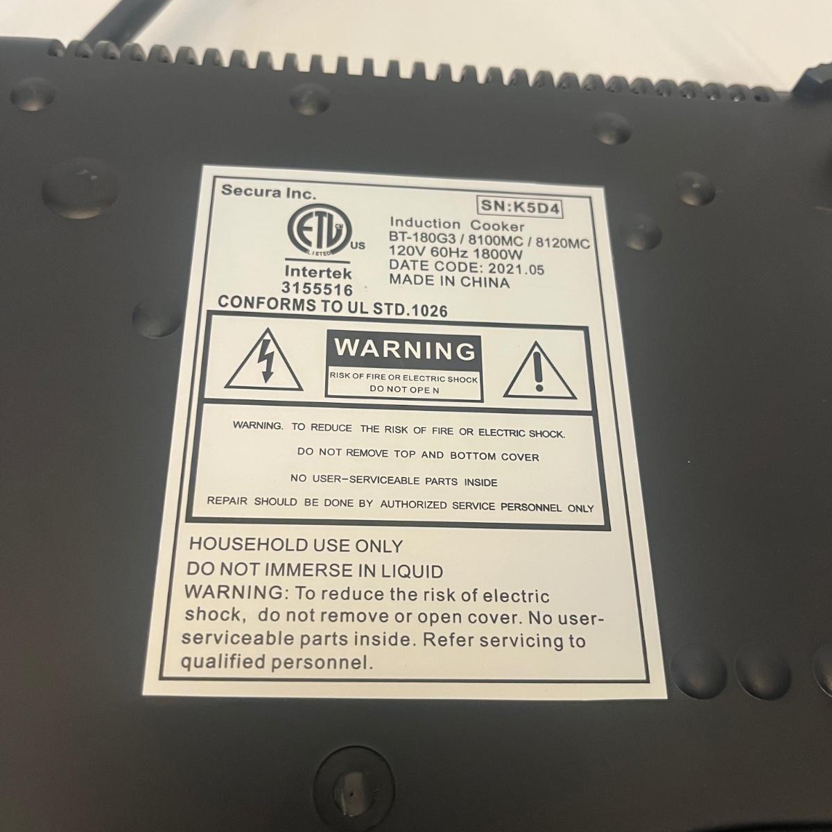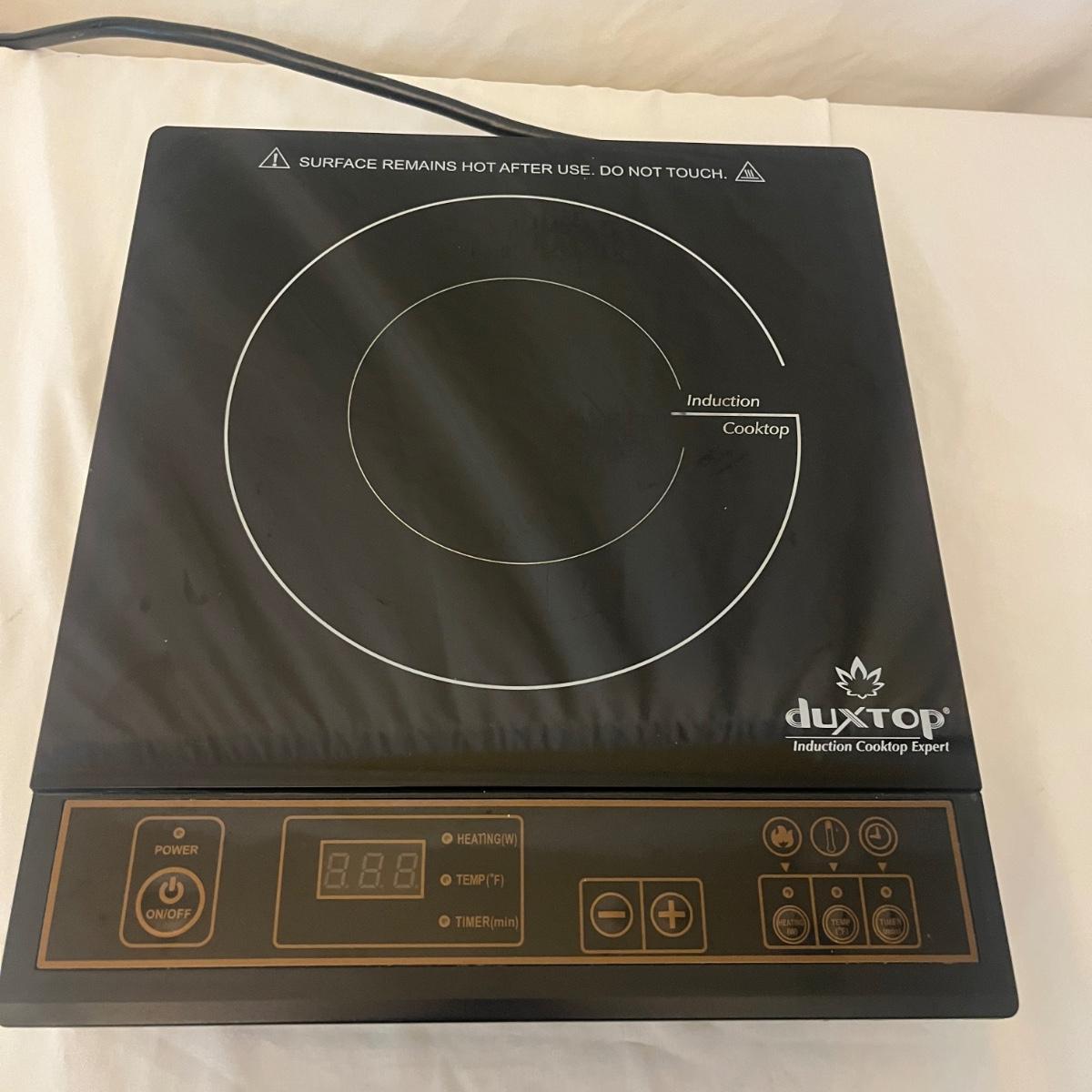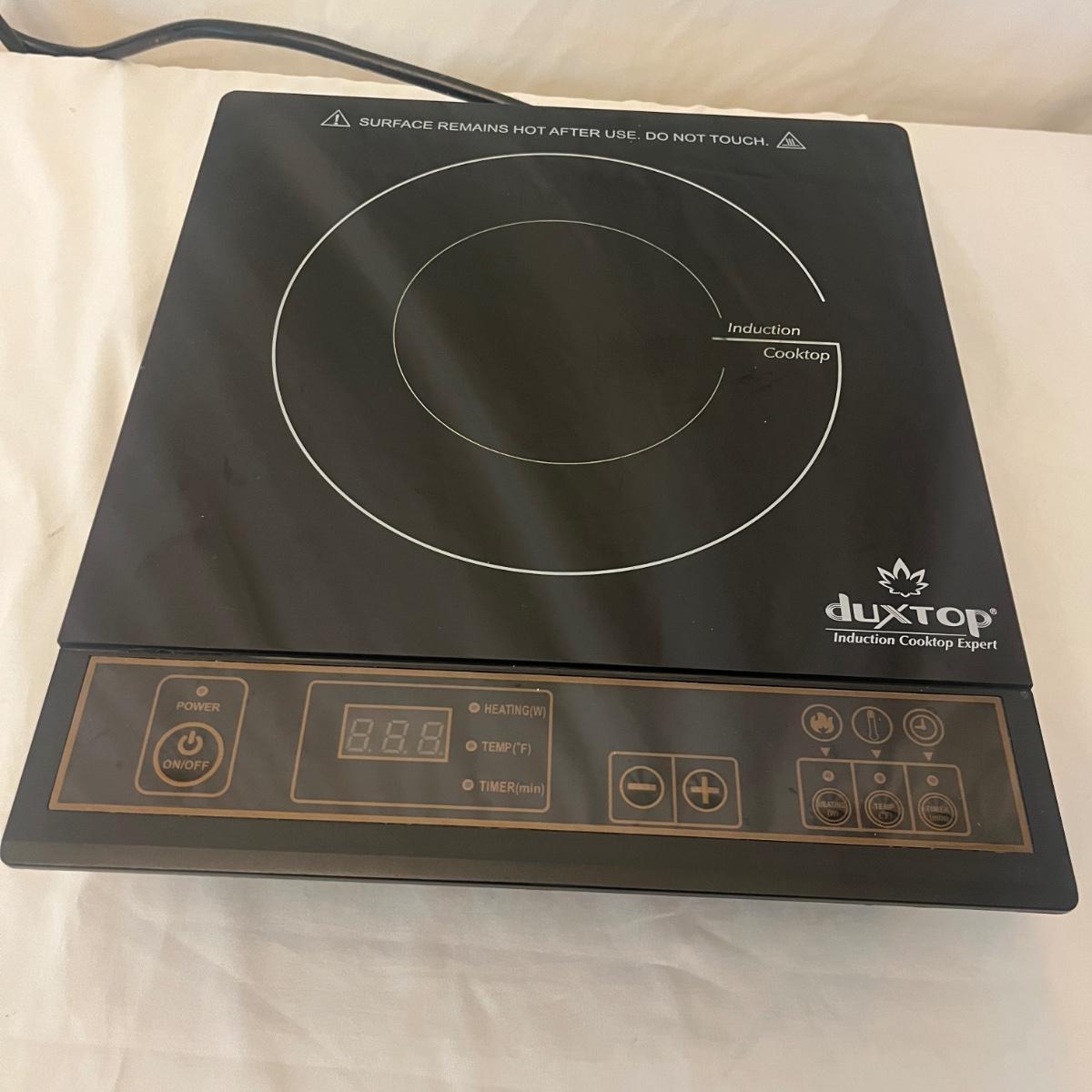Lot includes a Duxtop induction cooktop that measures 11.5” x 13” x 2.5”H. See photo for model information.