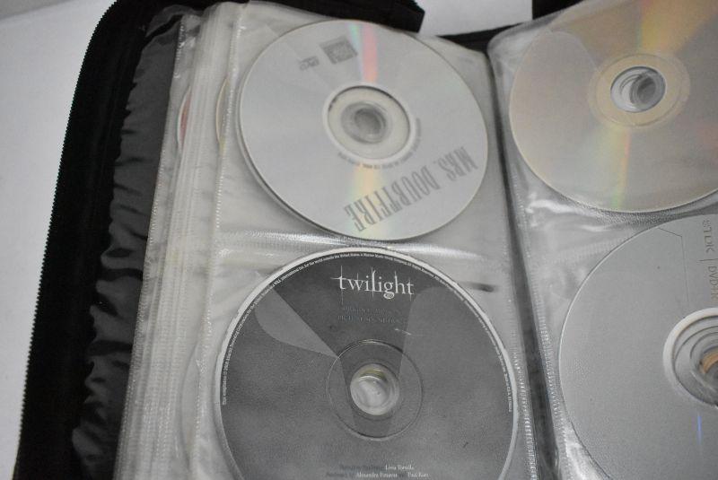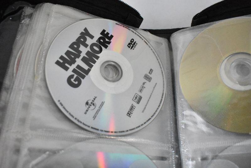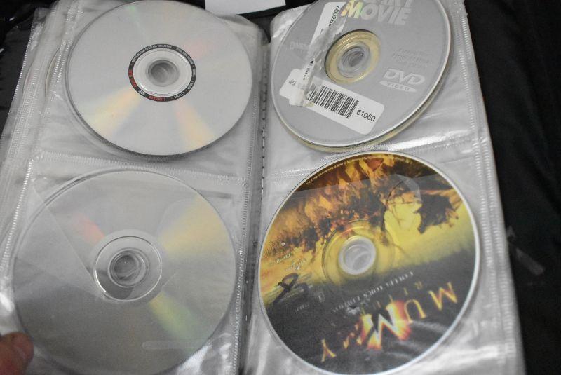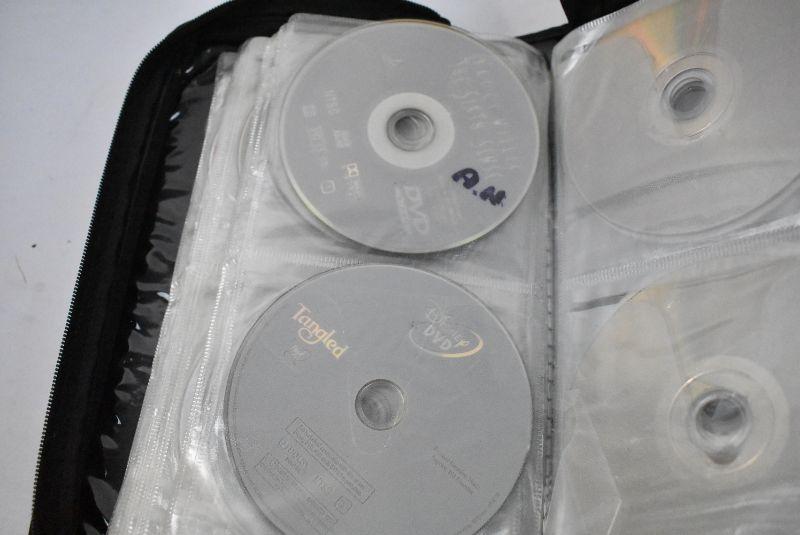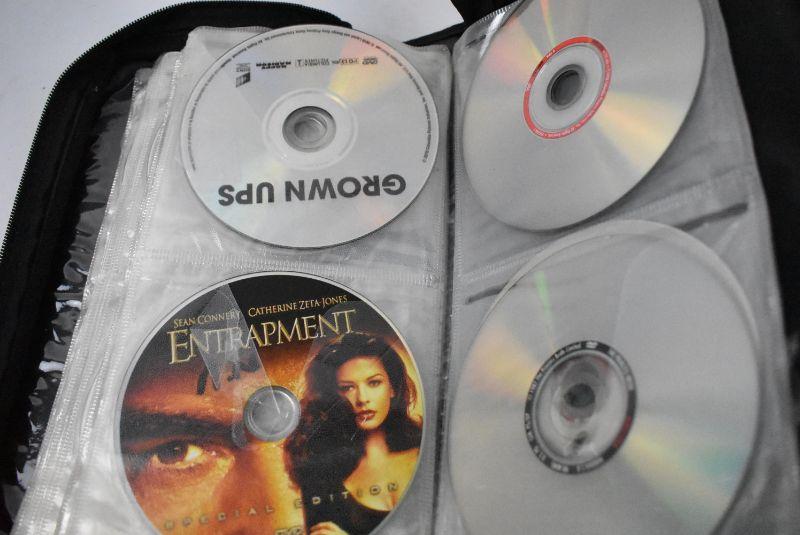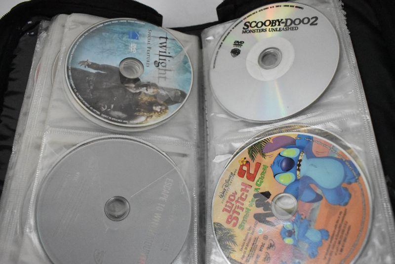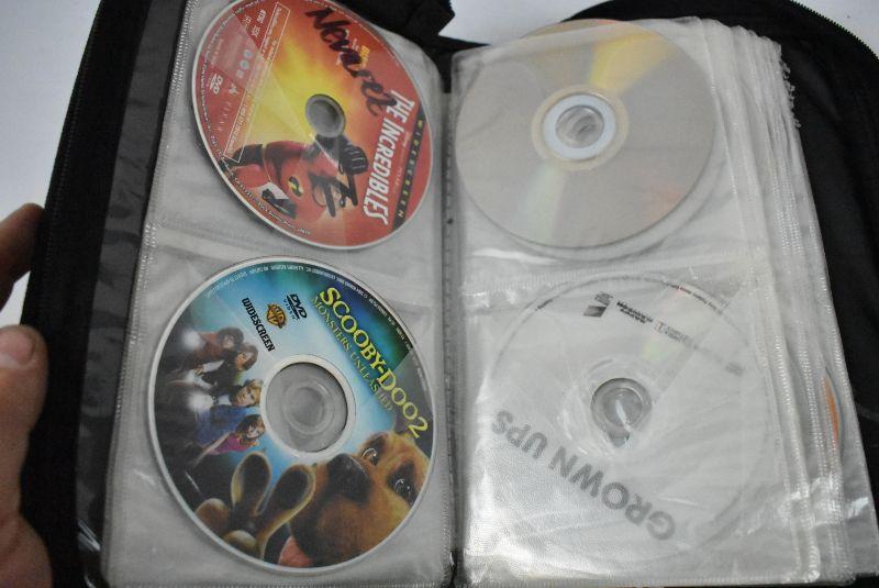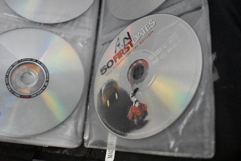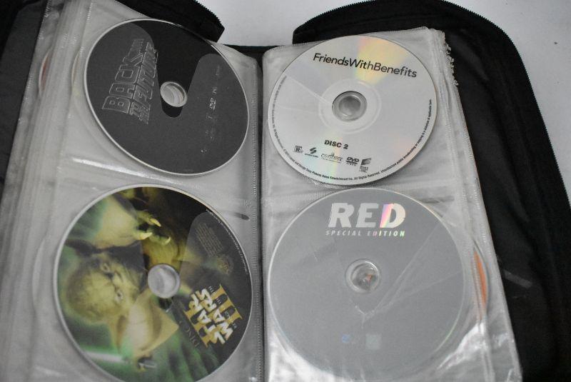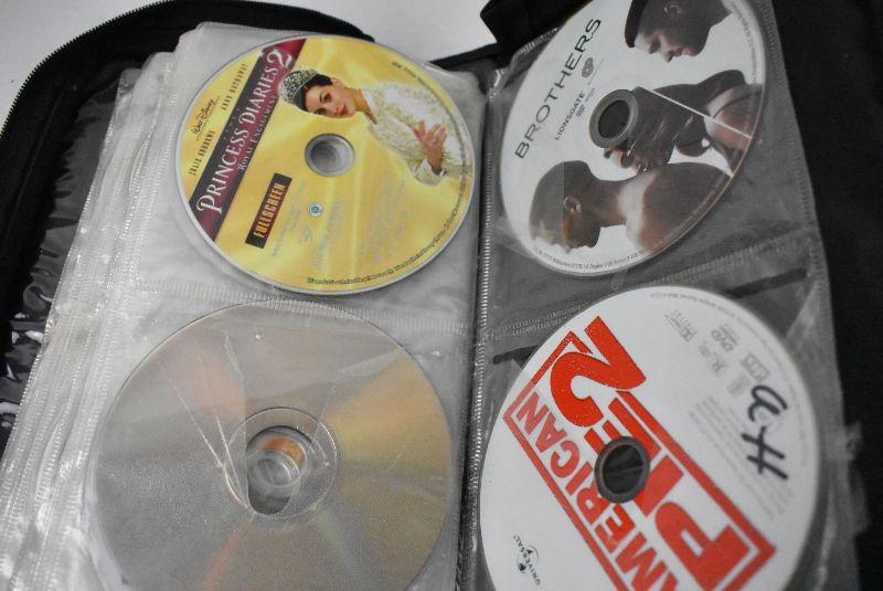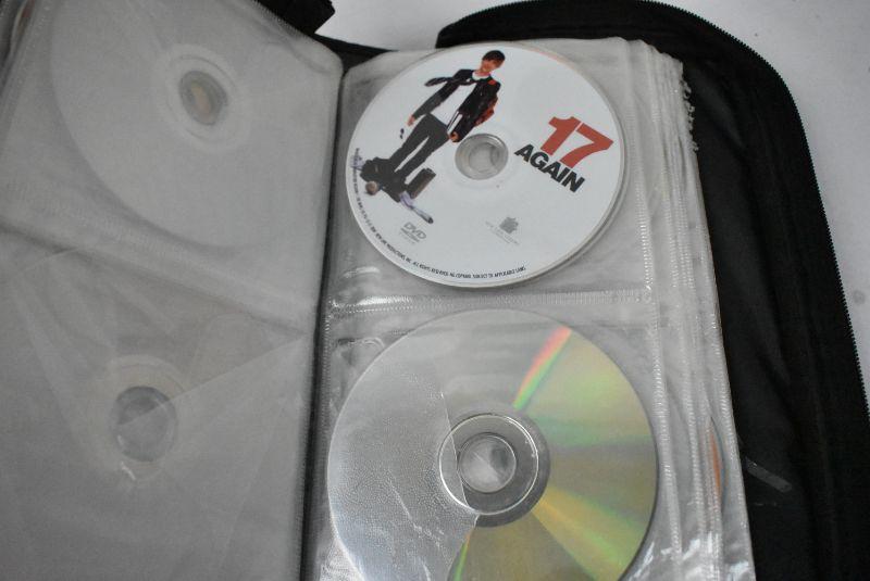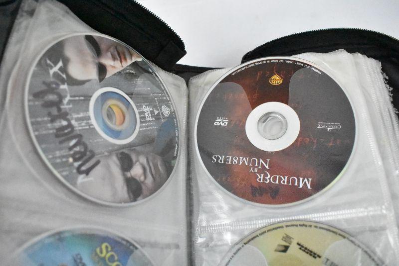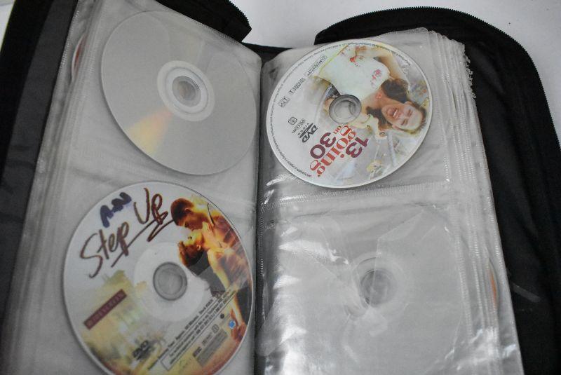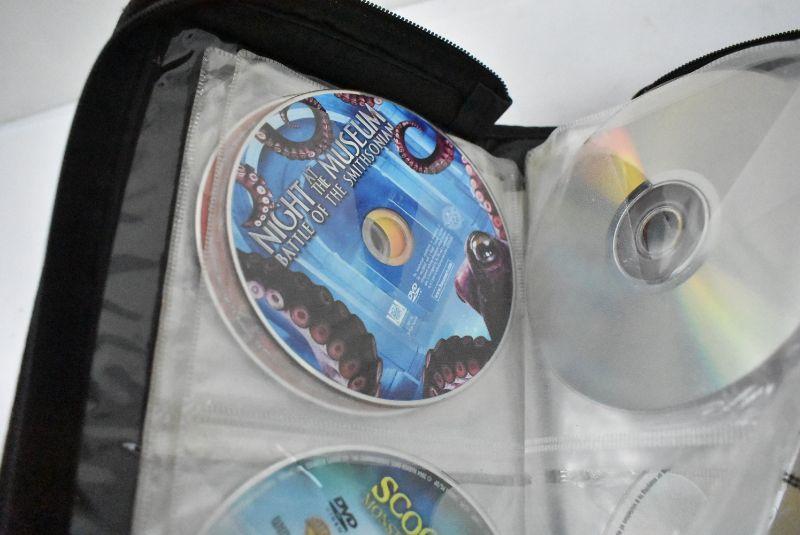 DVD Case with 34 Movies, Wide Variety, Nearly Half Full