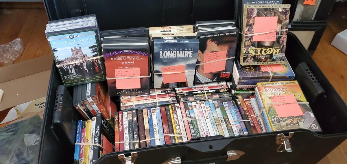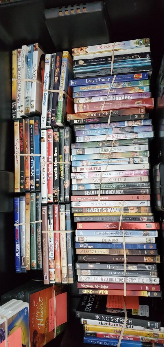 120 DVD movies in carrying case,has a good blend of movies,each case has been opened to ensure movies are in case holder and appear to be in great condition