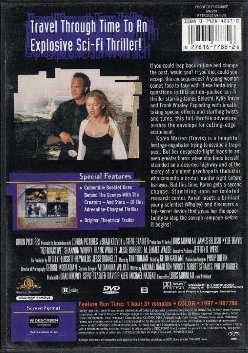 DVD * Retroactive, Sci-Fi action thriller movie, extras, Dolby Surround Stereo, 91 minutes. Excellent condition