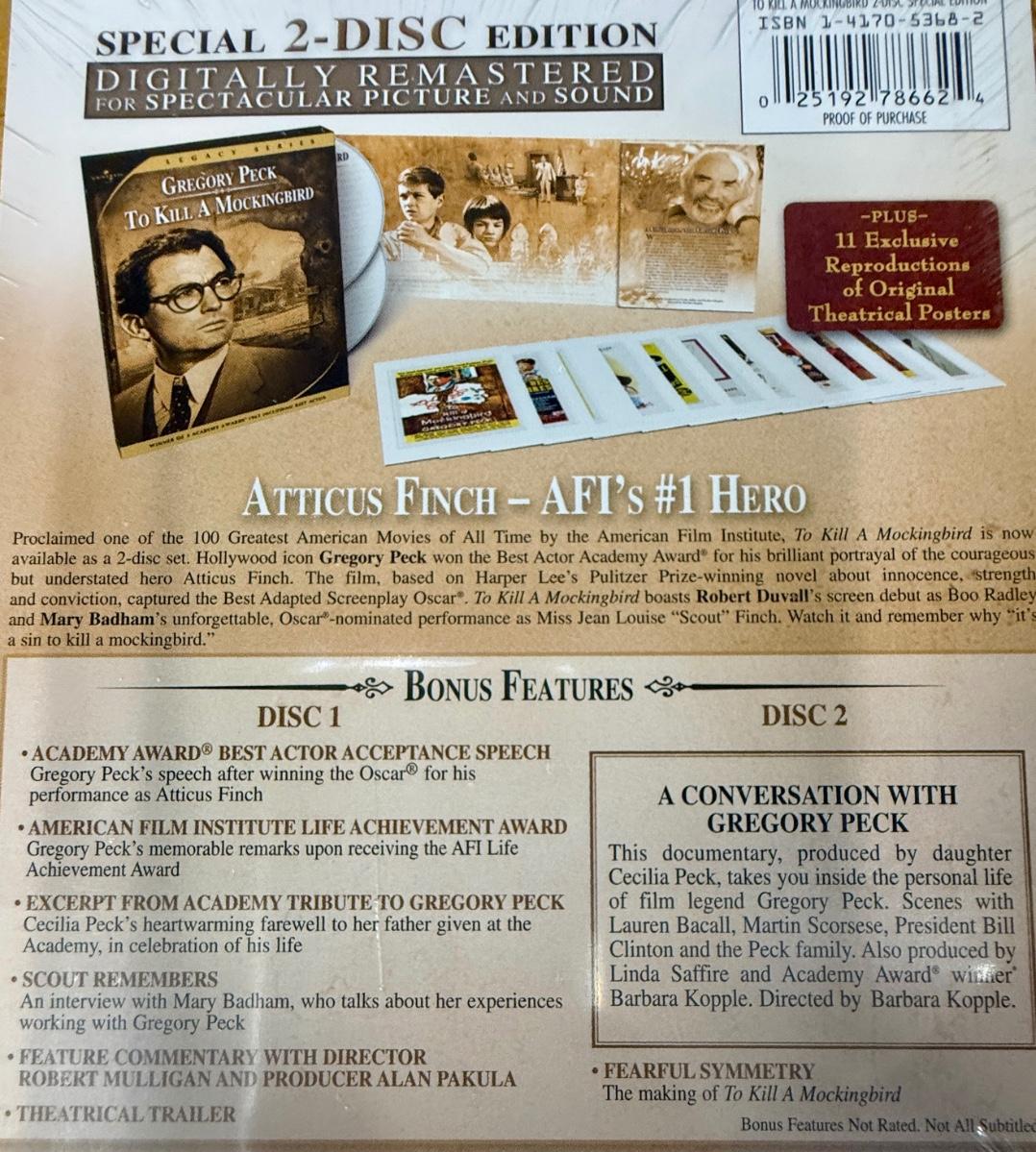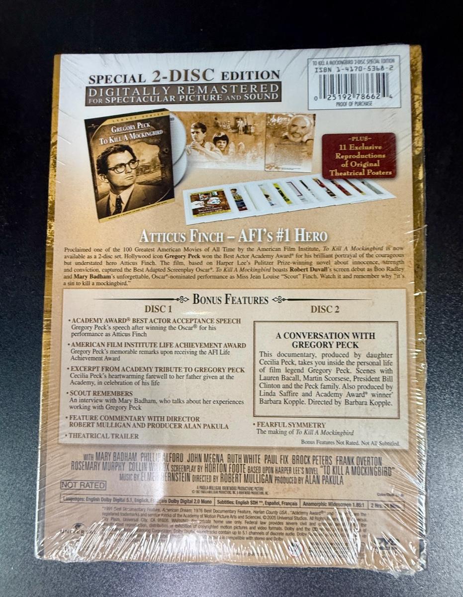 2-disc set includes original Academy-Award winning movie and interviews with Gregory Peck and others. Unopened, still in original shrink wrap. From 2005.