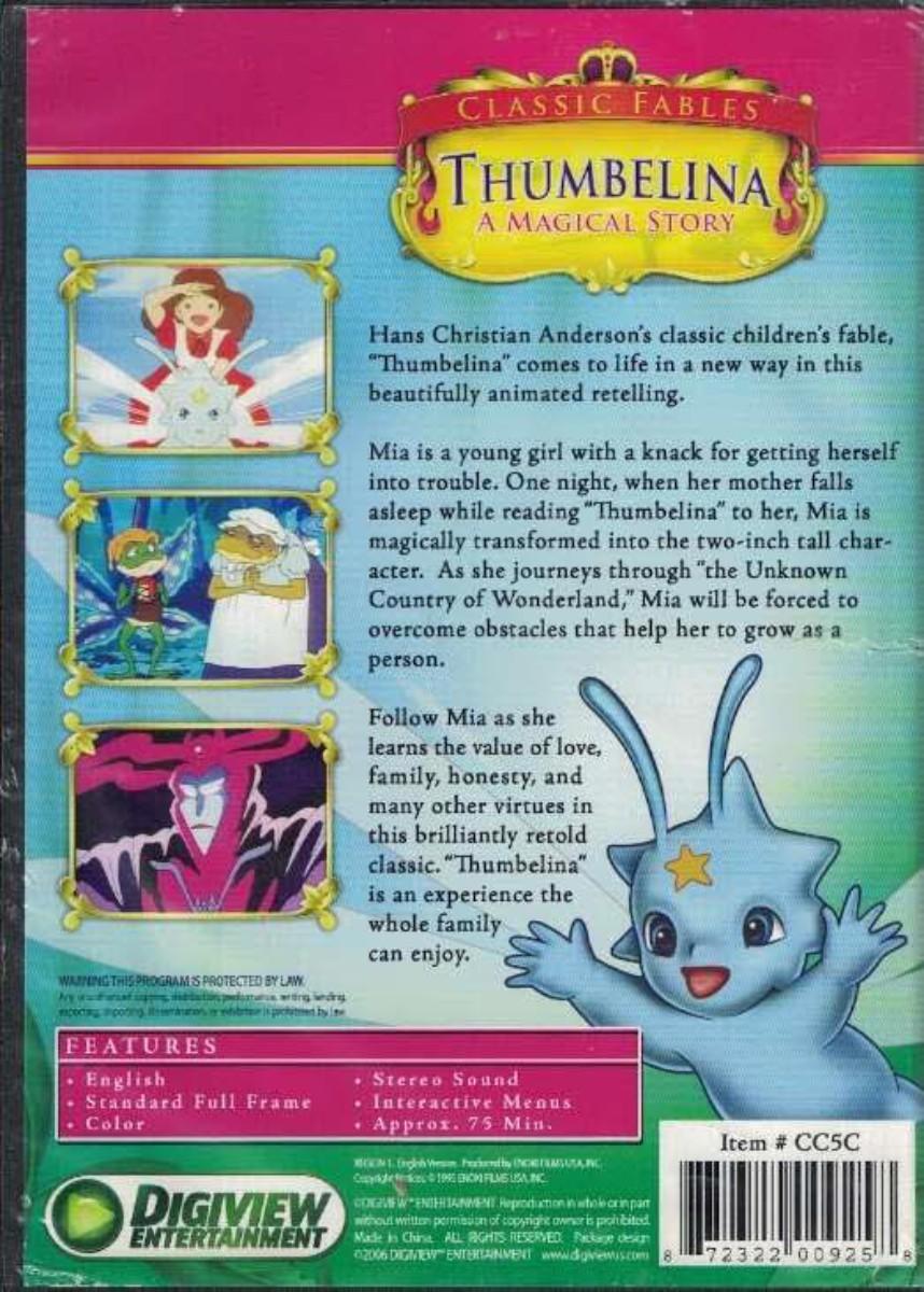DVD * Thumbelina, A Magical Story, animated movie, Classic Fables, 75 minutes, stereo. Disc in excellent condition