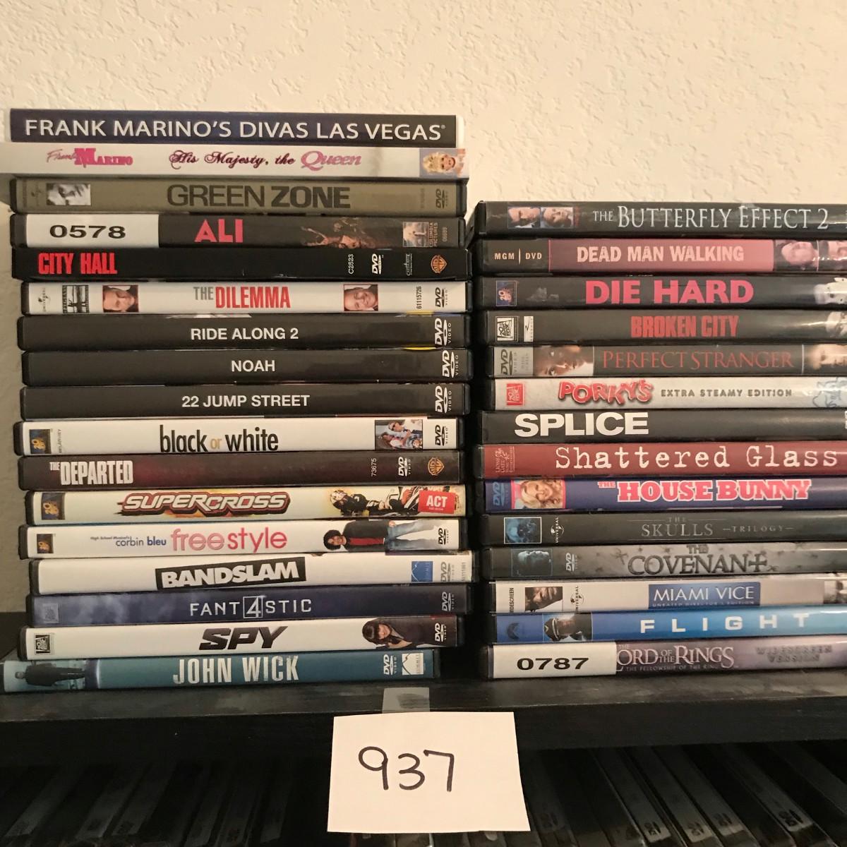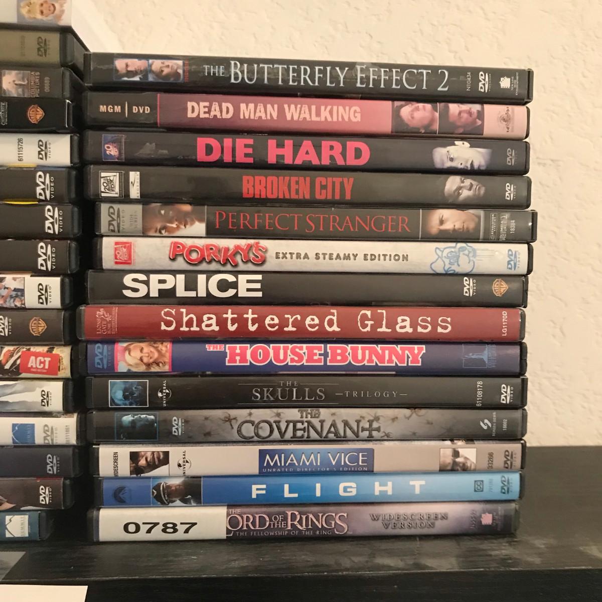 On DVDs: All DVDs are in the cases. Please look at photo's for titles and selections. We tried to sort by genre, but were not always successful with time constraints! What you see is what you get.