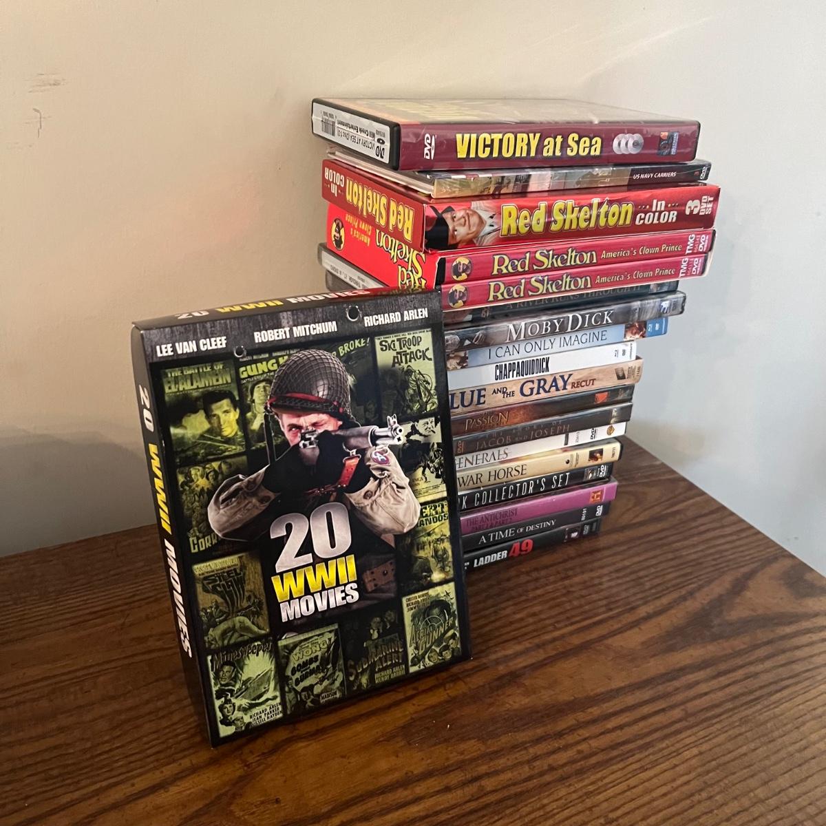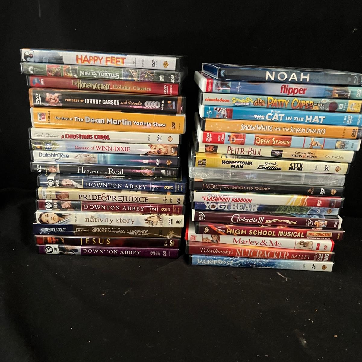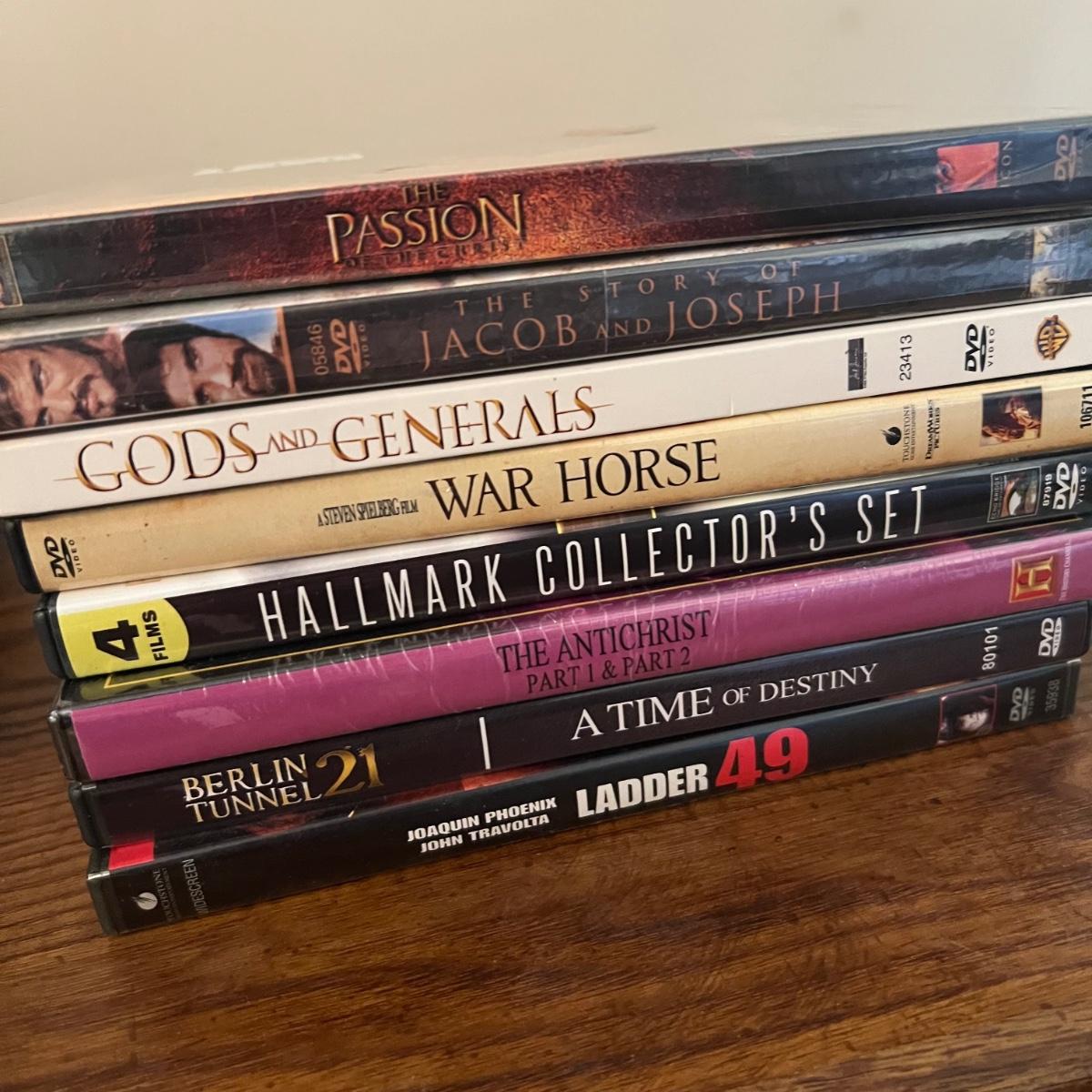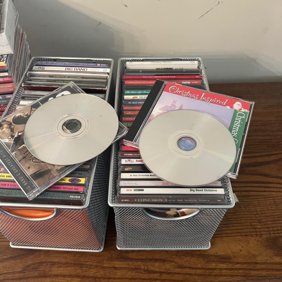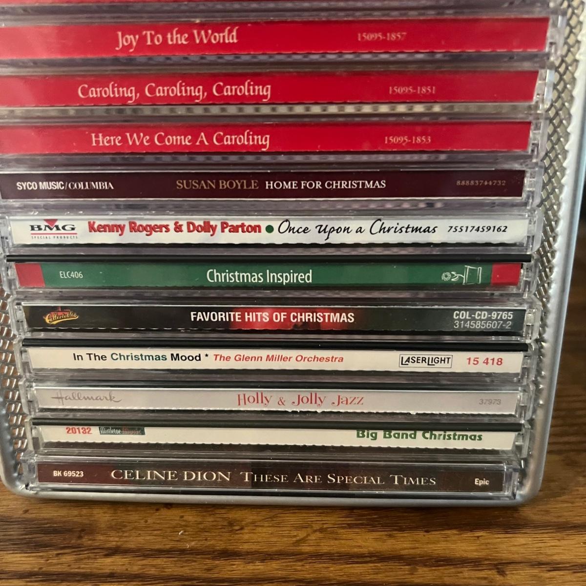 45 plus DVD’s & 50 plus CD’s are accompanied by 2 metal holders that hold around 20 each; they measure 5” x 11” x 6”H. Both DVD’s and CD’s include a few box sets, see images. Not all have been checked for condition and contents, but the ones we did check were correct and in good condition. Genres include country, Xmas, Classical and more, see images for titles.