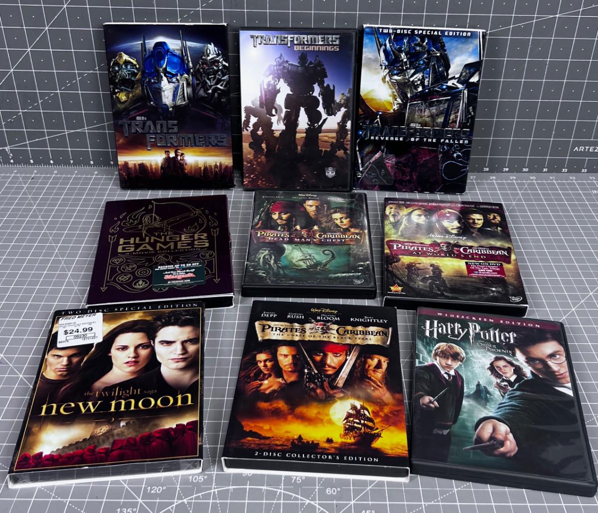DVD's; Harry Potter, Pirates of Caribbean, Transformer ETC.