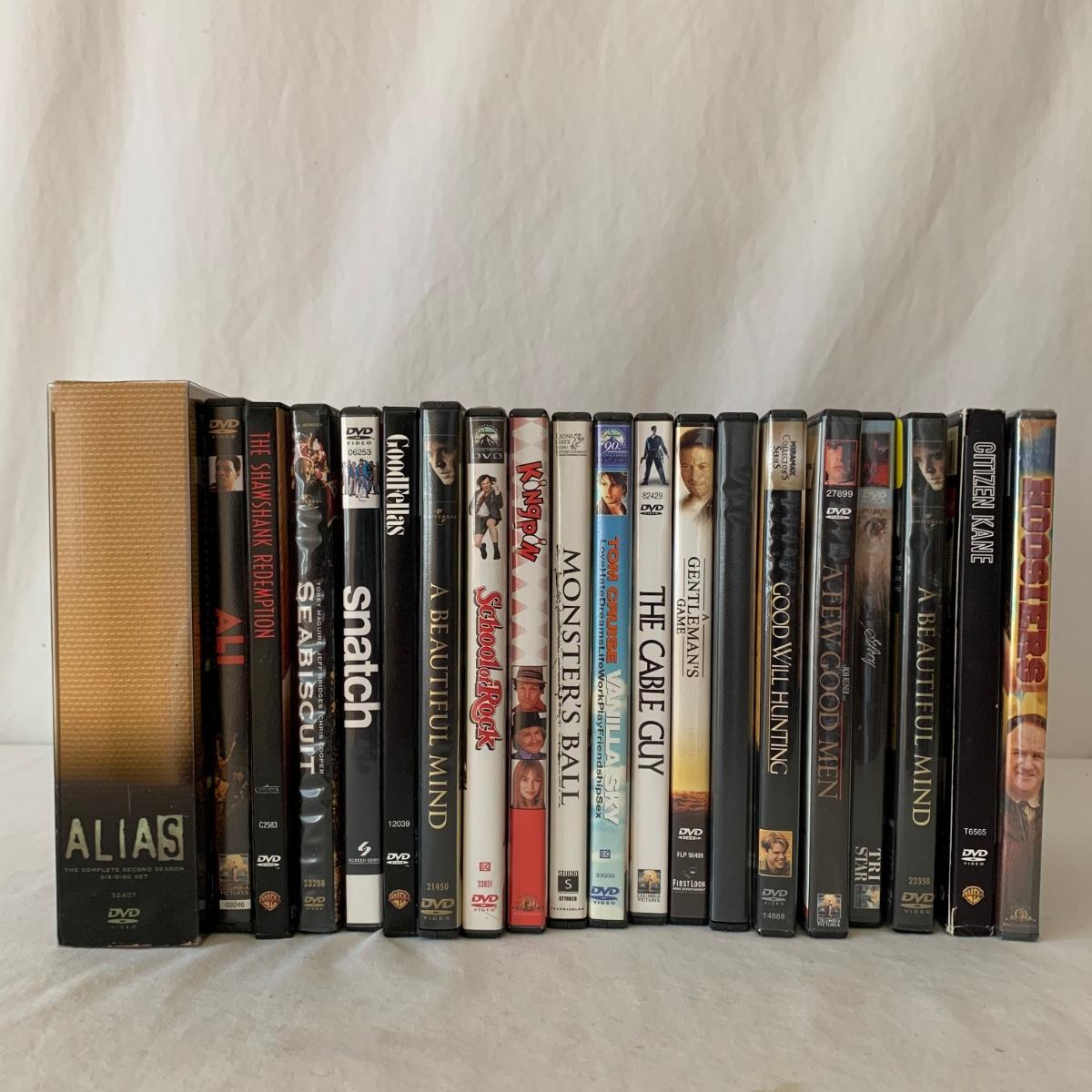Small DVD collection with 18 movies and the complete second season of Alias. Some of the movies include: The Shawshank Redemption, Snatch, Goodfellas, A Beautiful Mind, Kingpin, Vanilla Sky, The Cable Guy, Good Will Hunting, and more. All discs are in cases and all that were checked appear to be in good condition without scratches. A few are still sealed. Shipping available.