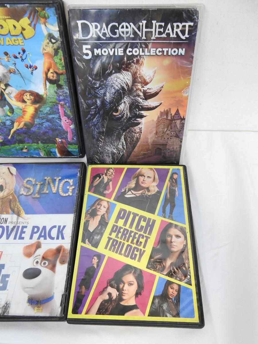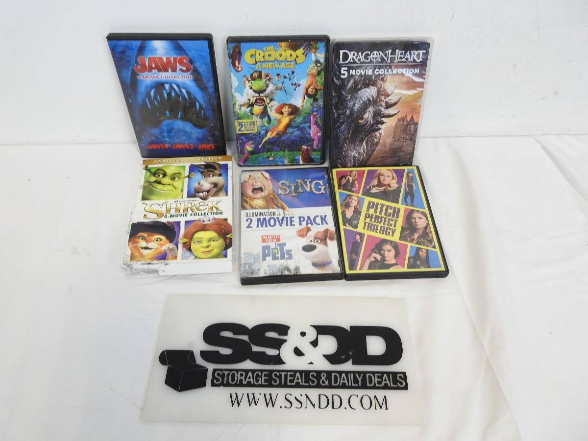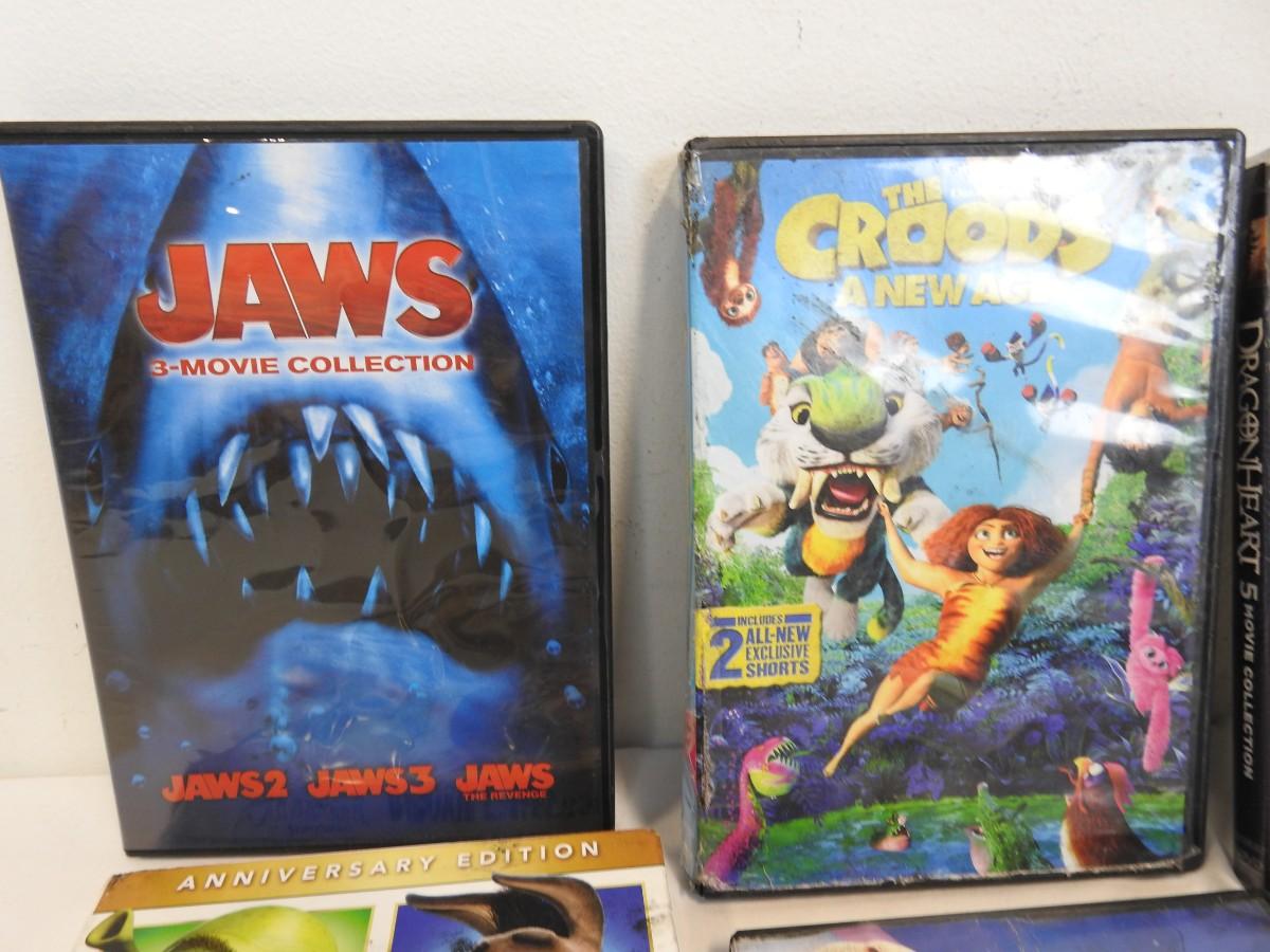 DVDs: The Croods, DragonHeart, Jaws 2,3,The Revenge, Pitch Perfect, Shrek, Sing