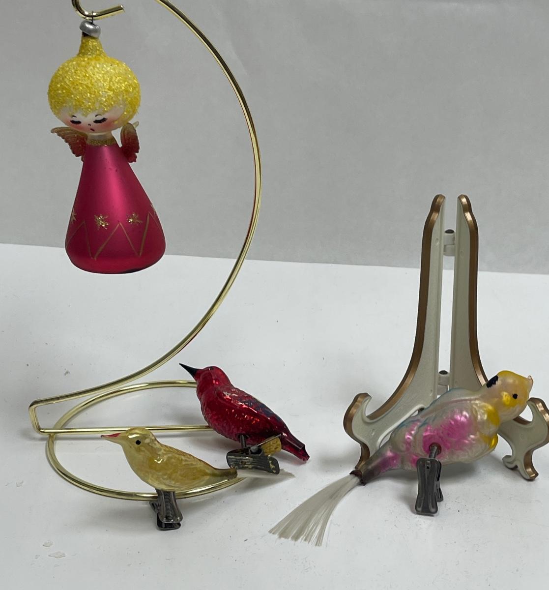 Antique Old Christmas Tree Ornaments Angel. and 3 birds