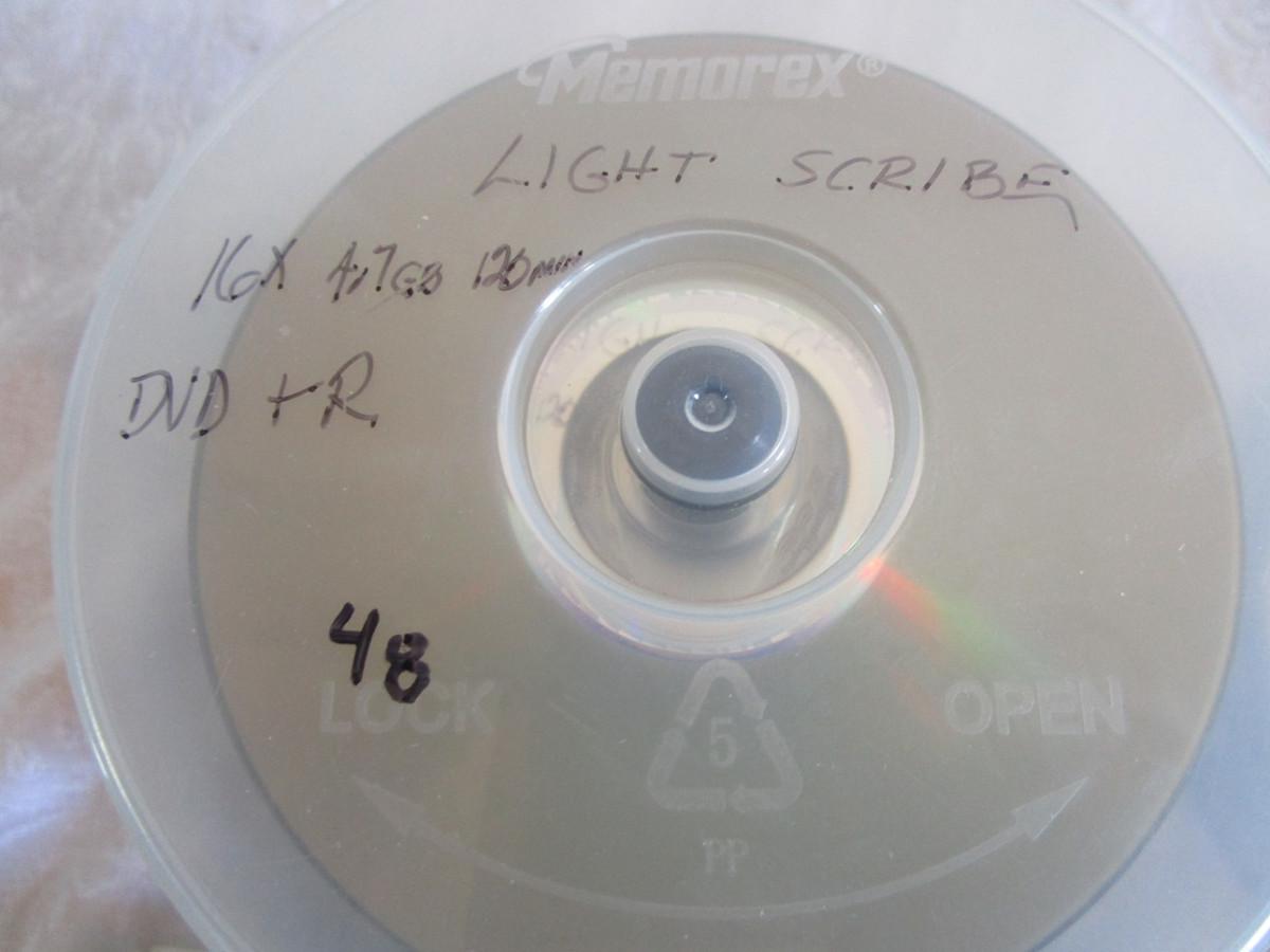 See Pictures, 9 Sony DVD+RW 120 minutes/4.7GB in case; 48 Memorex Light Scribe DVD+R 16X 4.7 GB 120 minutes in case