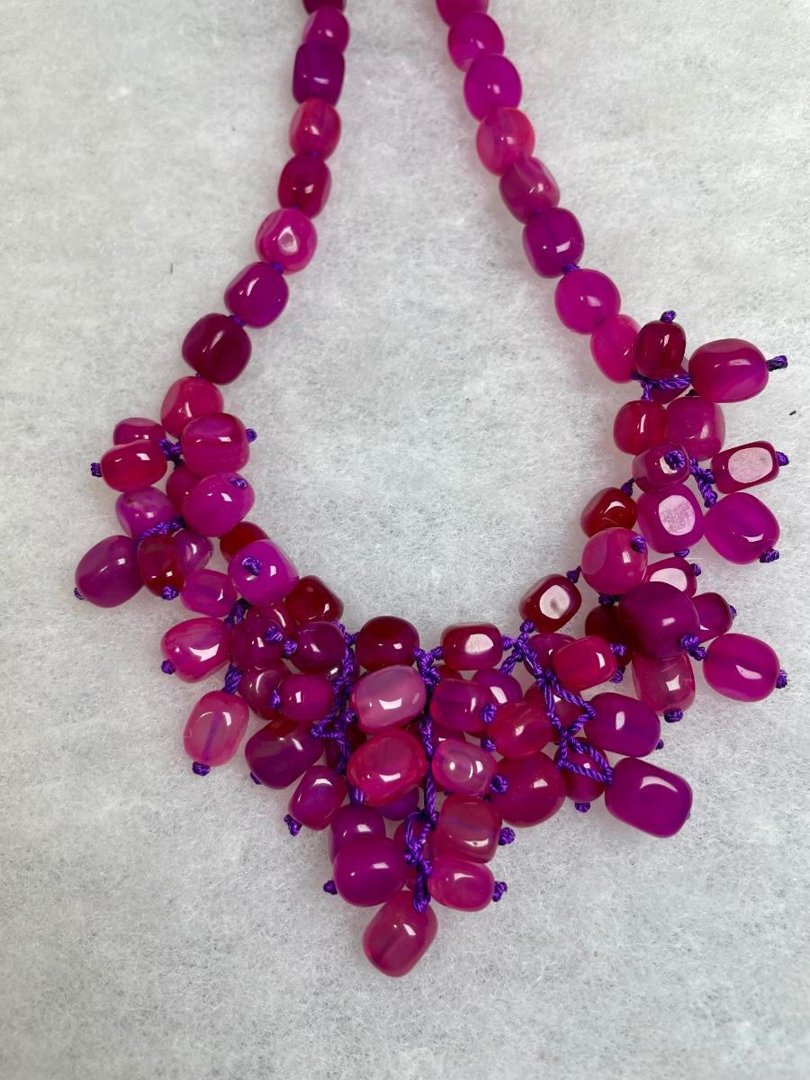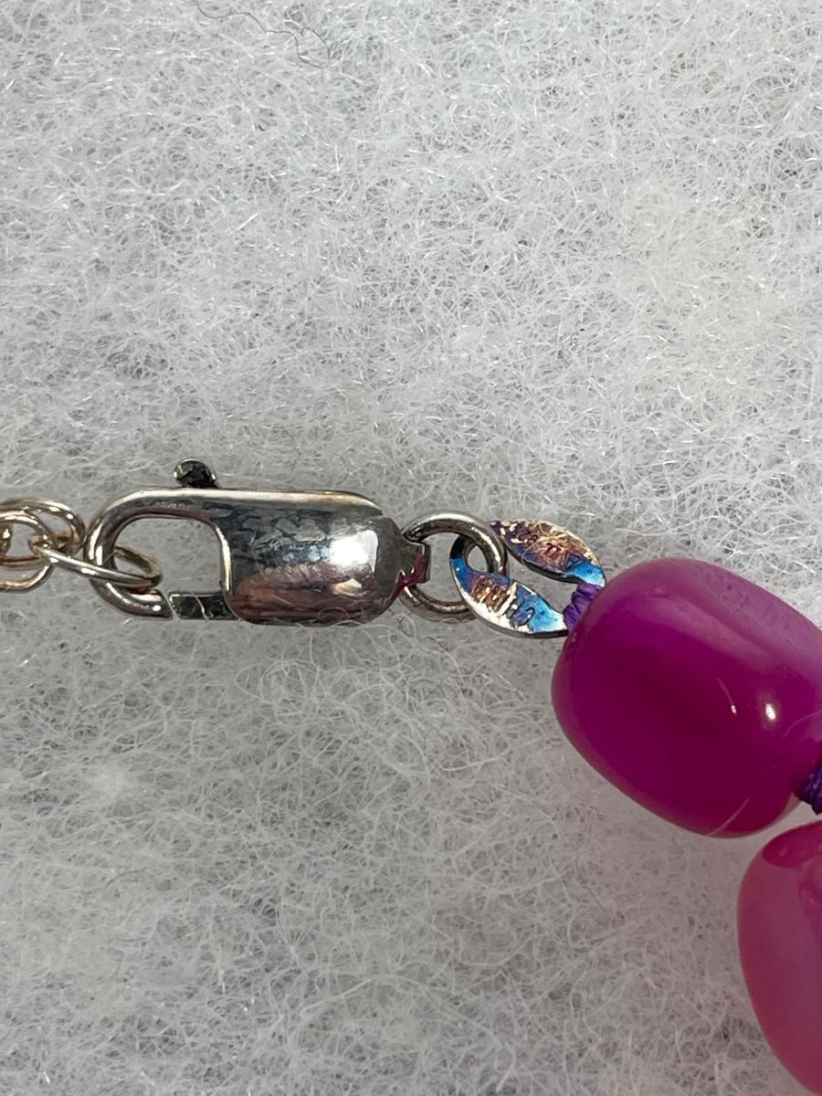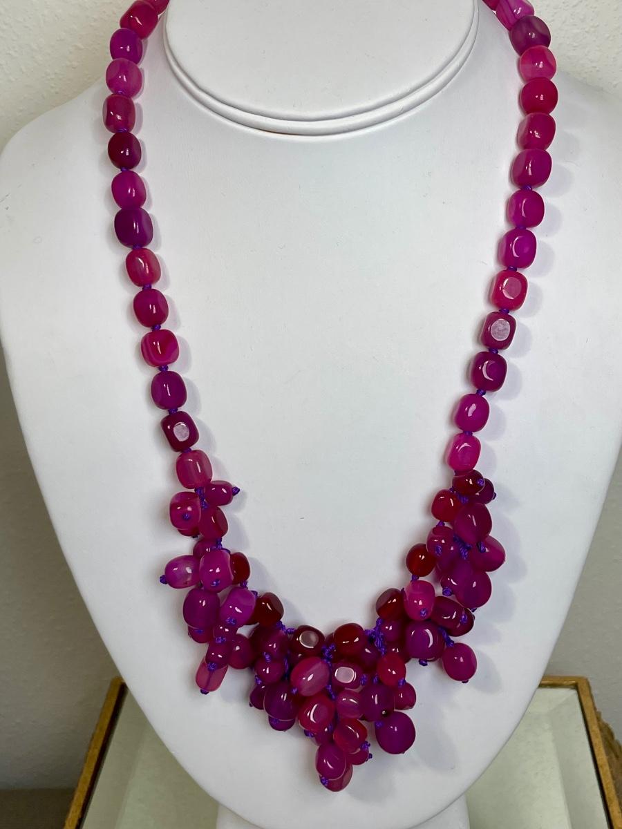 Dyed Pink Agate beaded Sterling Necklace