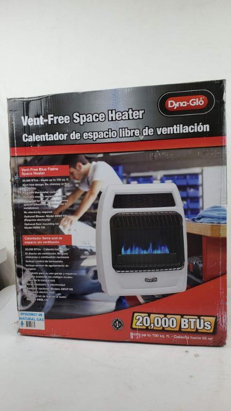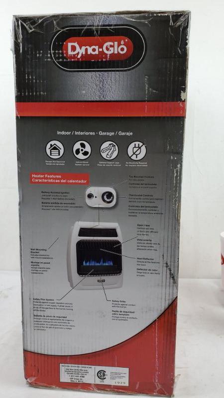 Dyna-Glo Thermostatic Wall Heater, 20,000 BTU Natural Gas Blue Flame Vent Free - New
