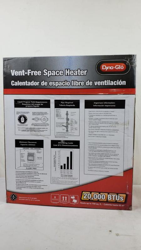 Dyna-Glo Thermostatic Wall Heater, 20,000 BTU Natural Gas Vent Free - New