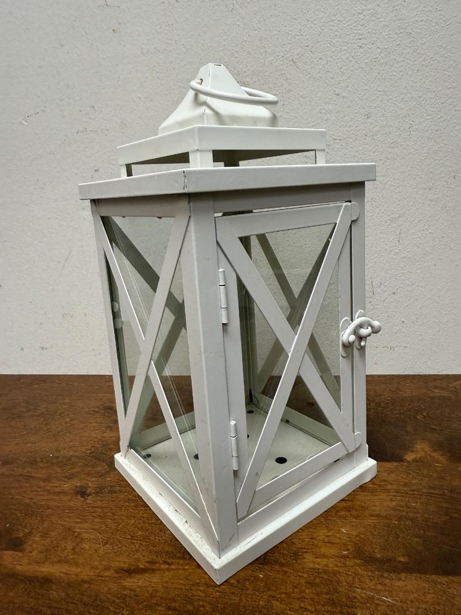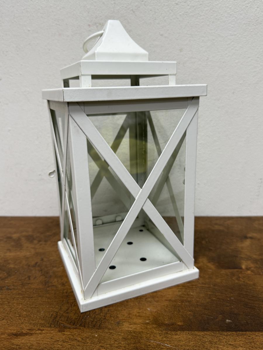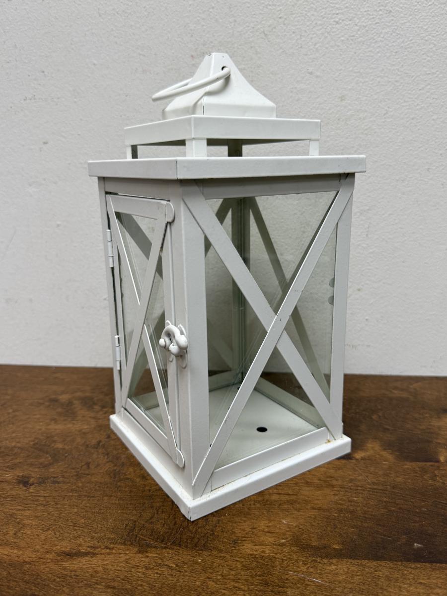 Matte White Metal Glass Lantern Candle Holder with Hanger