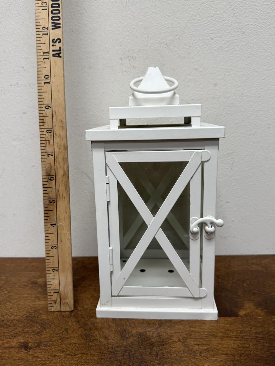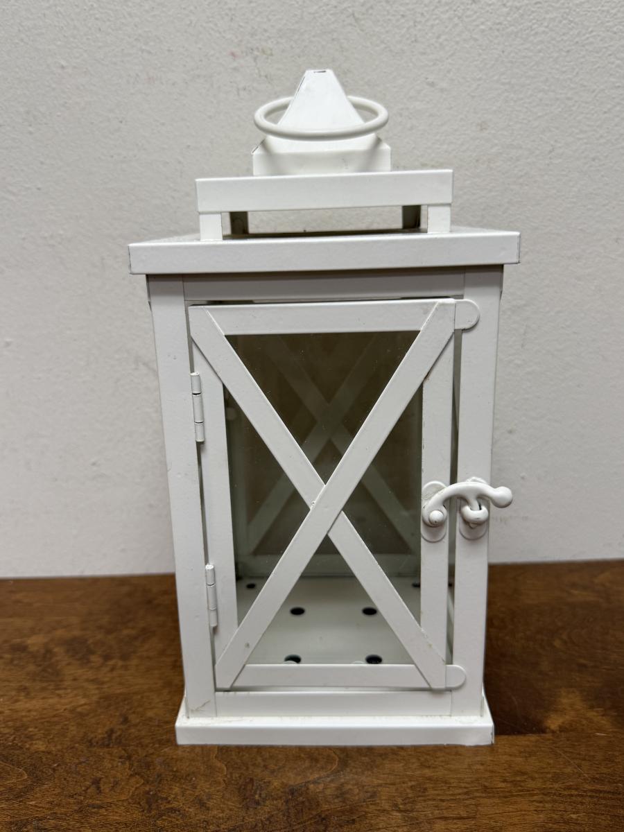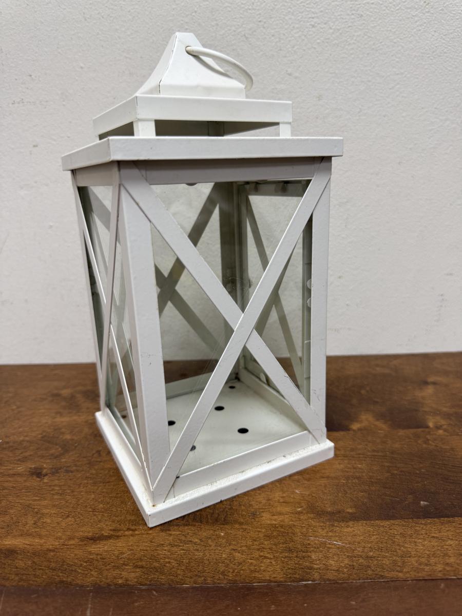 Matte White Metal Glass Lantern Candle Holder with Hanger