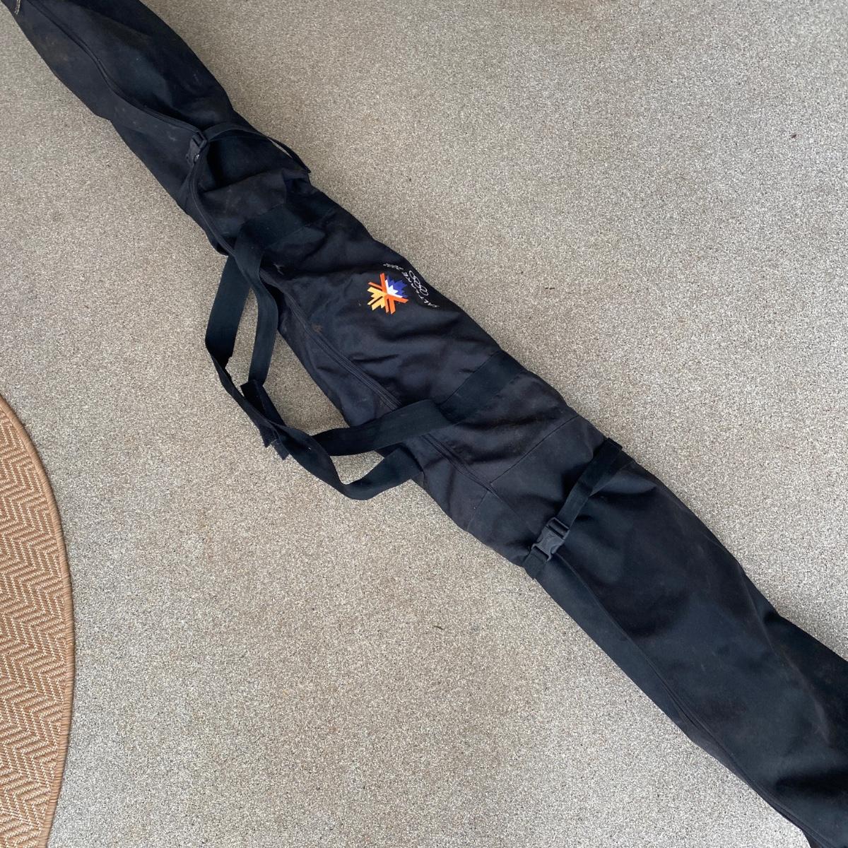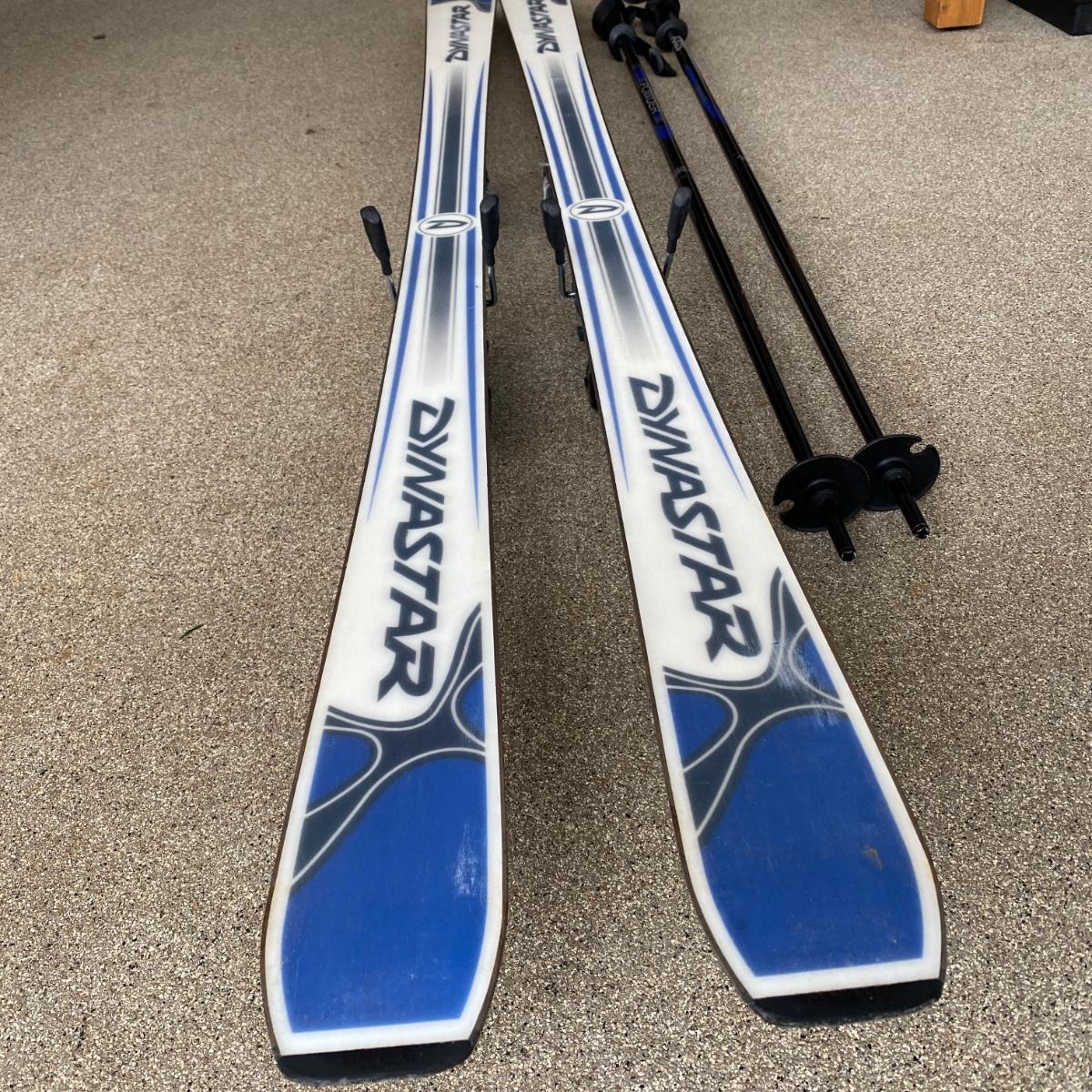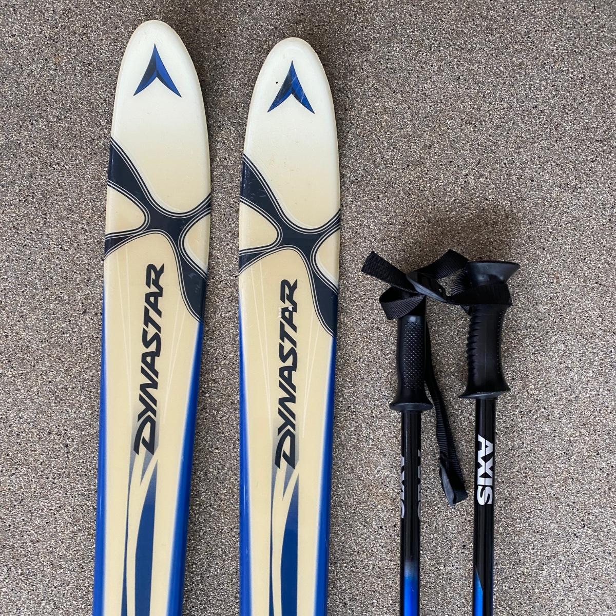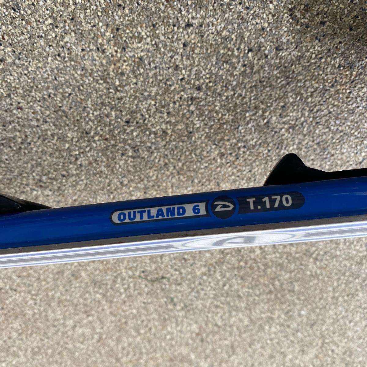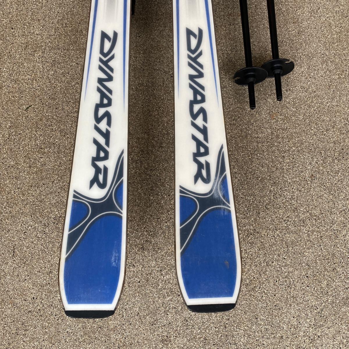 Pair of Dynastar Outland Skis, Axis poles and storage bag. Skis are in excellent condition and appear to be unused. See photos for all markings. Storage Bag has Salt Lake 2002 logo embroidered on it. Measures 67” long by 4” wide. Local pick up.
