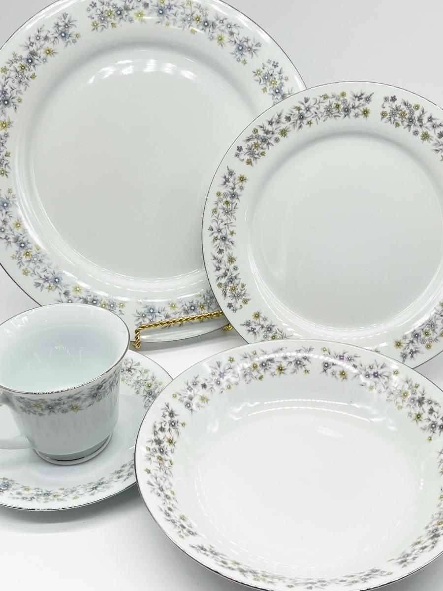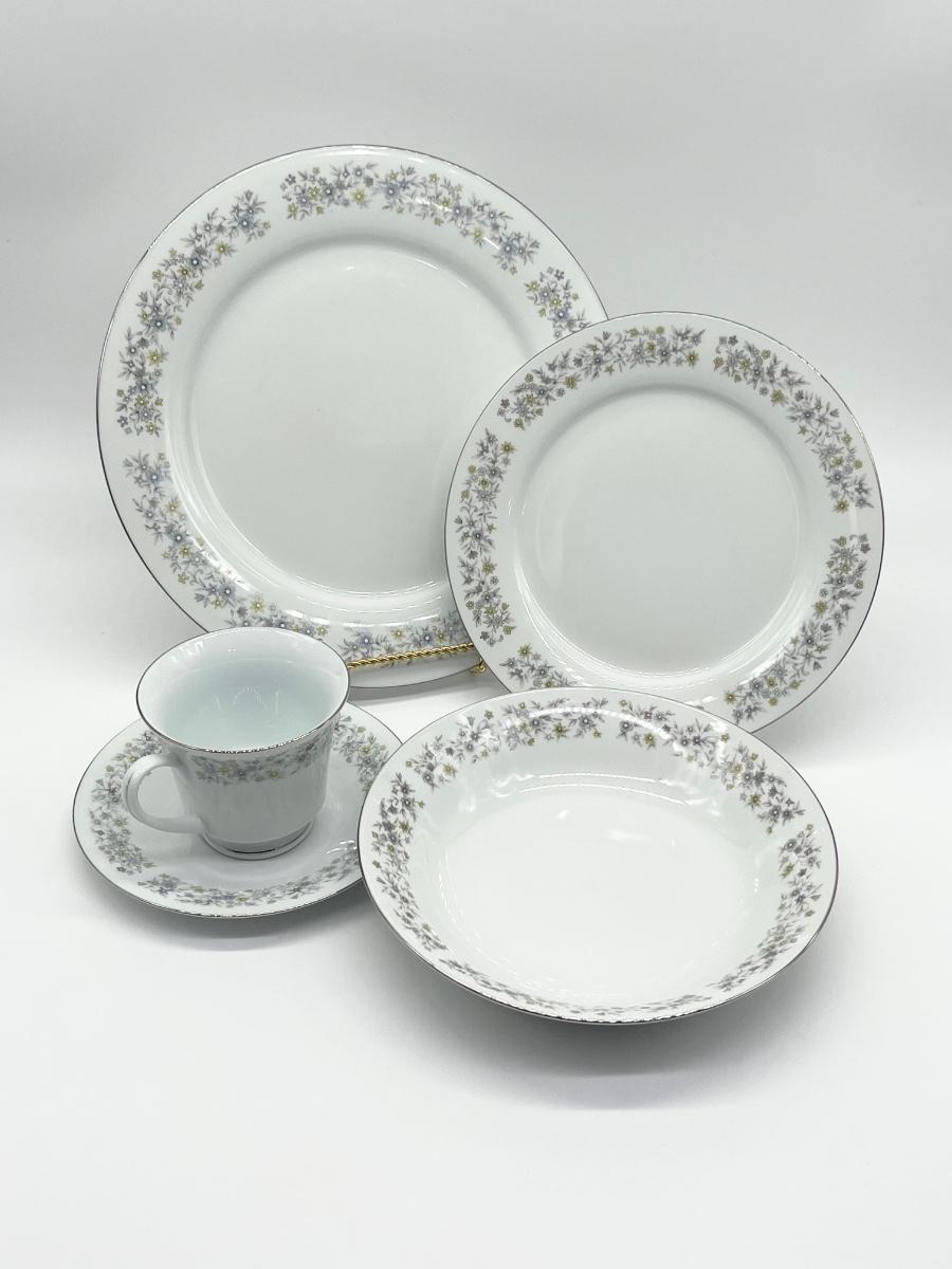 DYNASTY ~ 5-Piece Service For 6 ~ Silver Rimmed Dinnerware Set