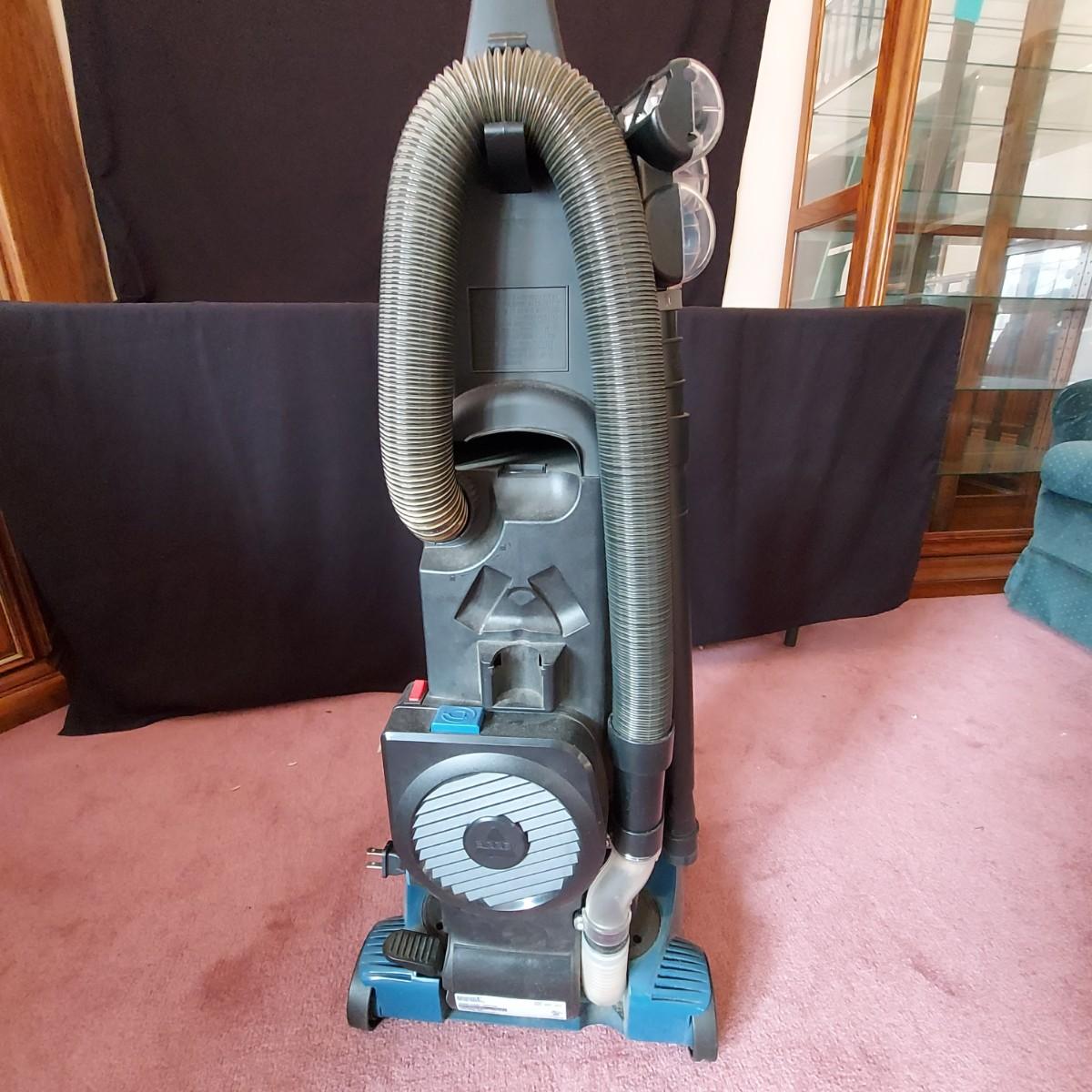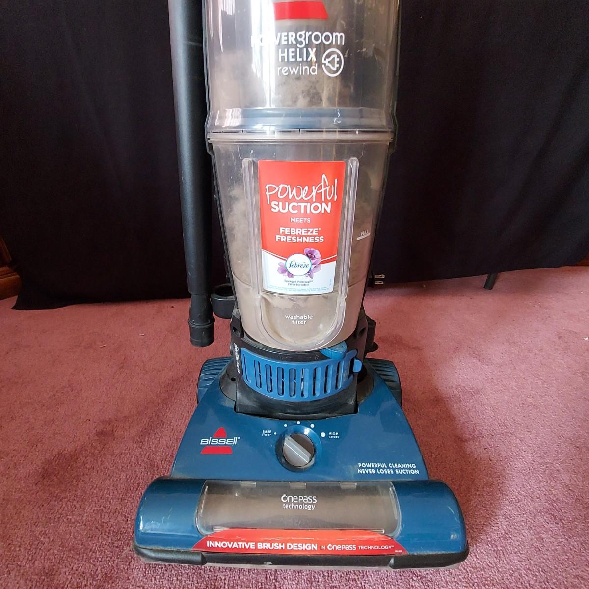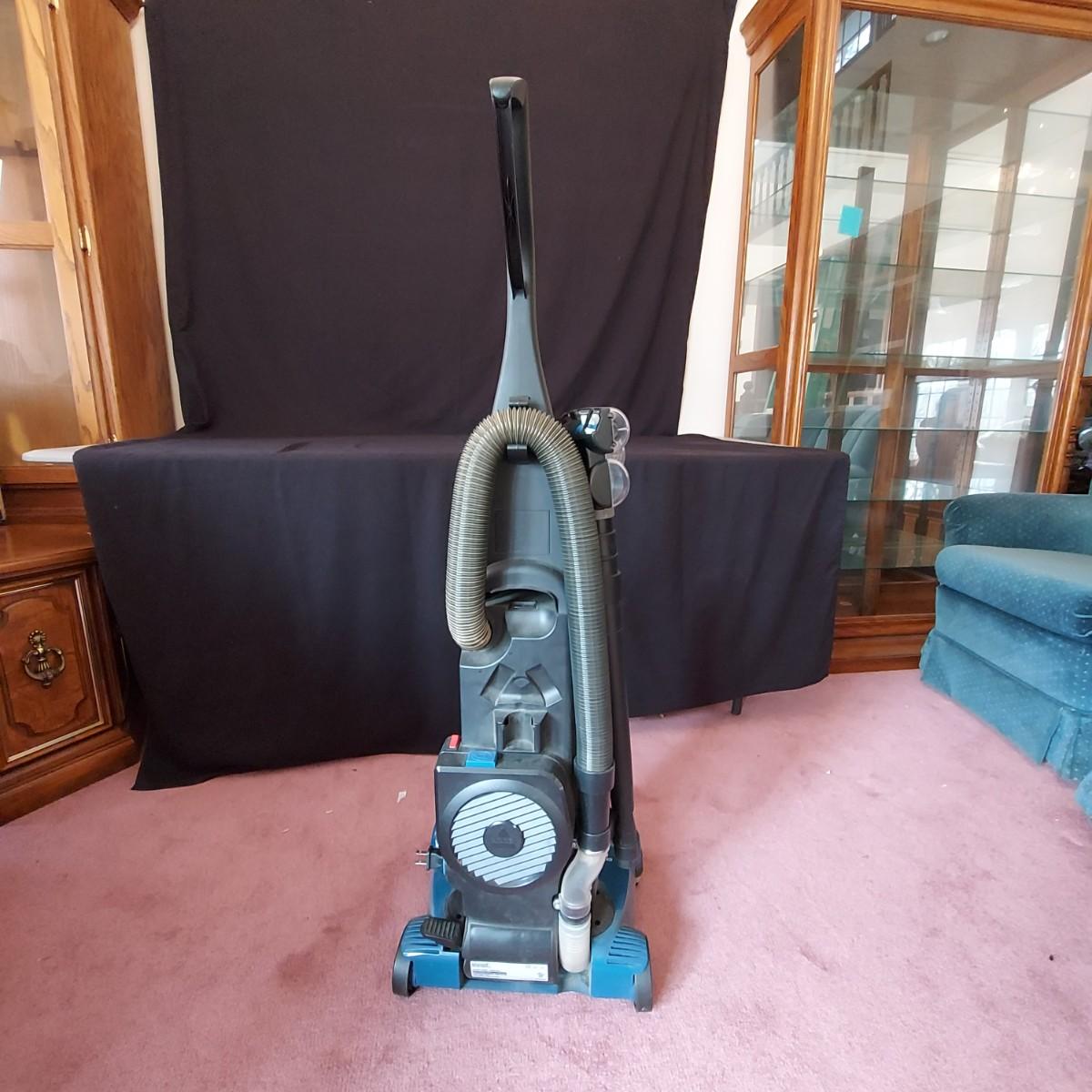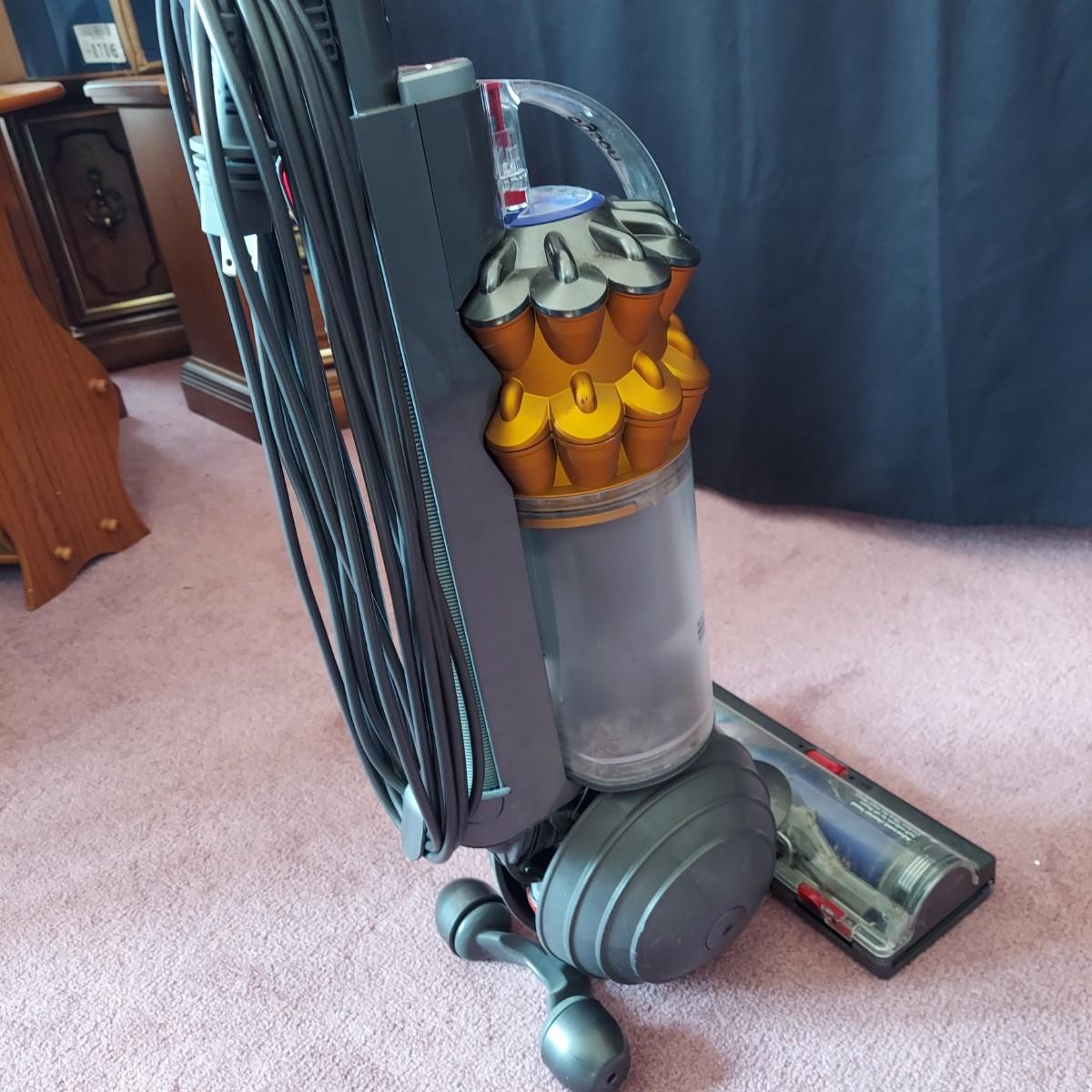 Dyson and Bissell Vacuums. Dyson Small Ball upright corded vacuum. Bissell Powergroom Helix Rewind with retractable cord. Both plugged in and powered on, and the carpwt brushes worked. Local Pickup Only.