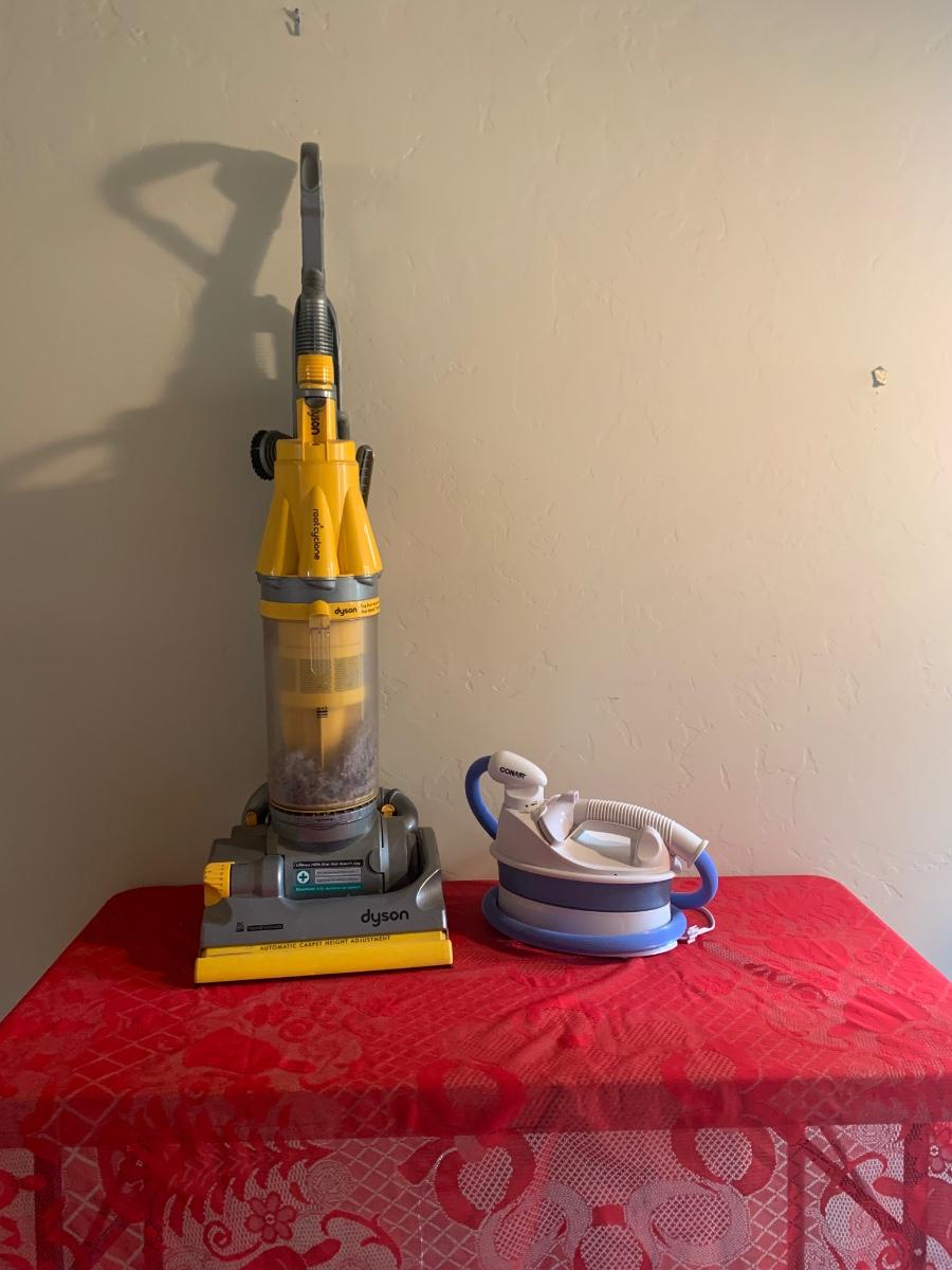 Dyson DC07 cyclone vacuum, tested and works and a Conair clothes steamer (untested).
