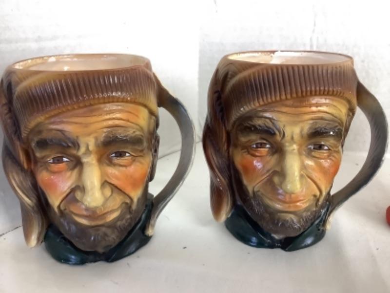E 2157 Vintage Tilso Japan Character Mugs and Bossons English Chalkware Head