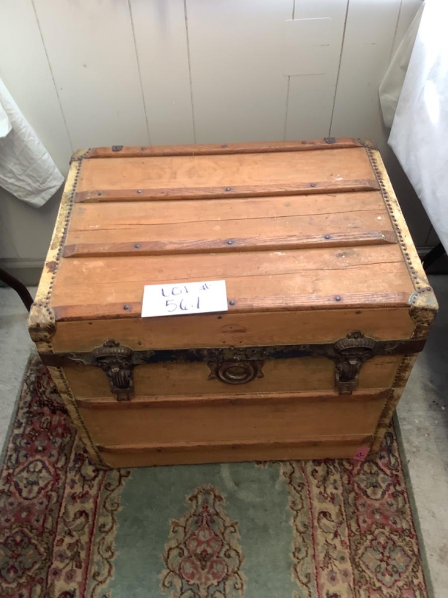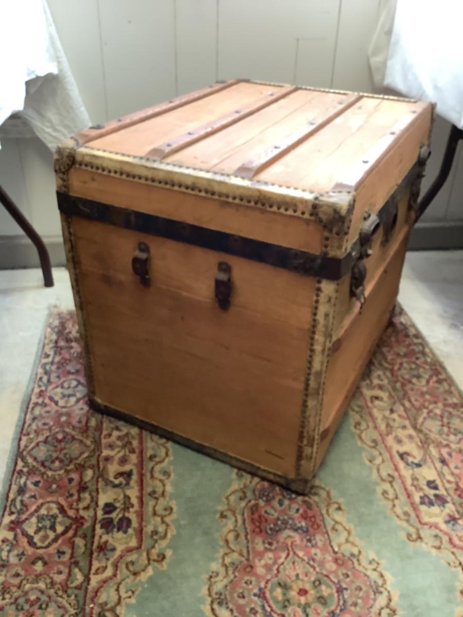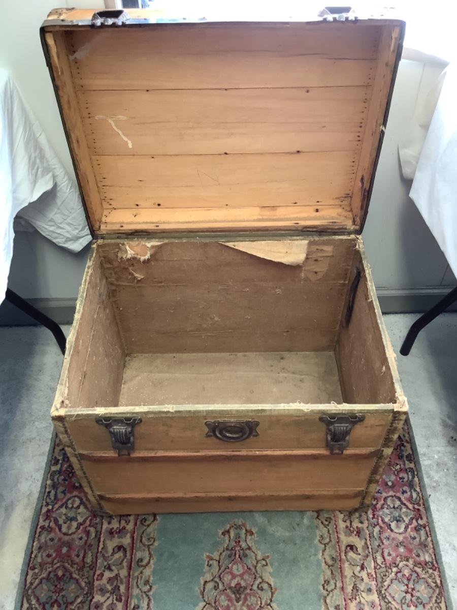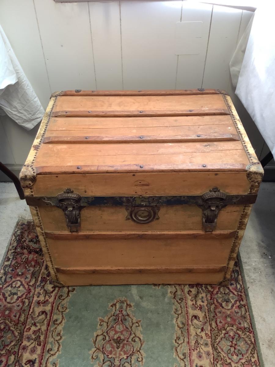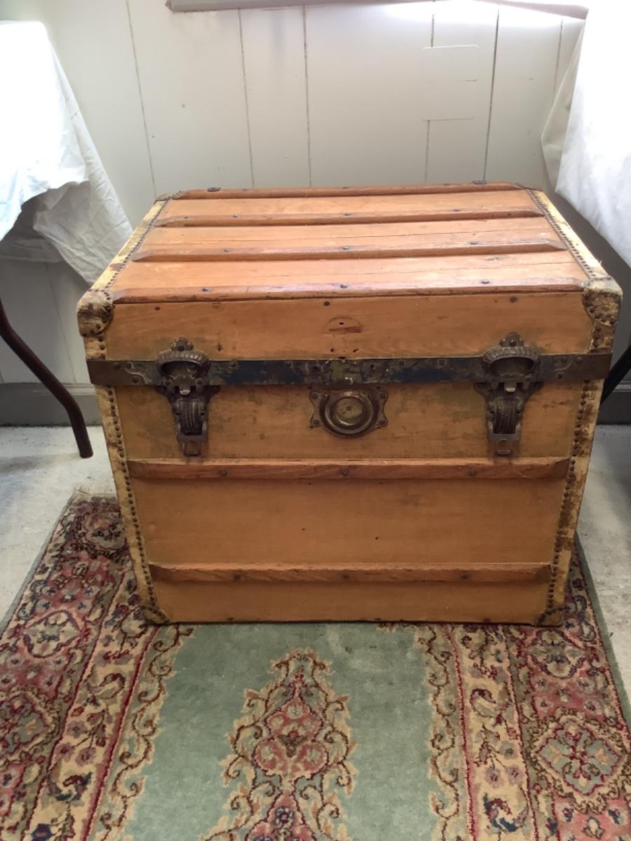 E - 561  Antique Steamer trunk Chest, L. E. Morrison Indianapolis