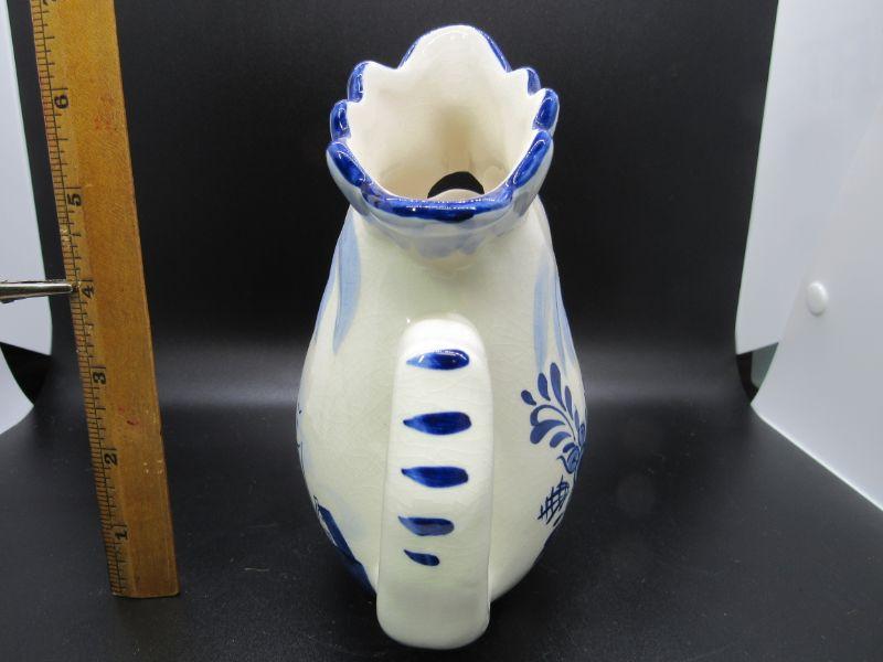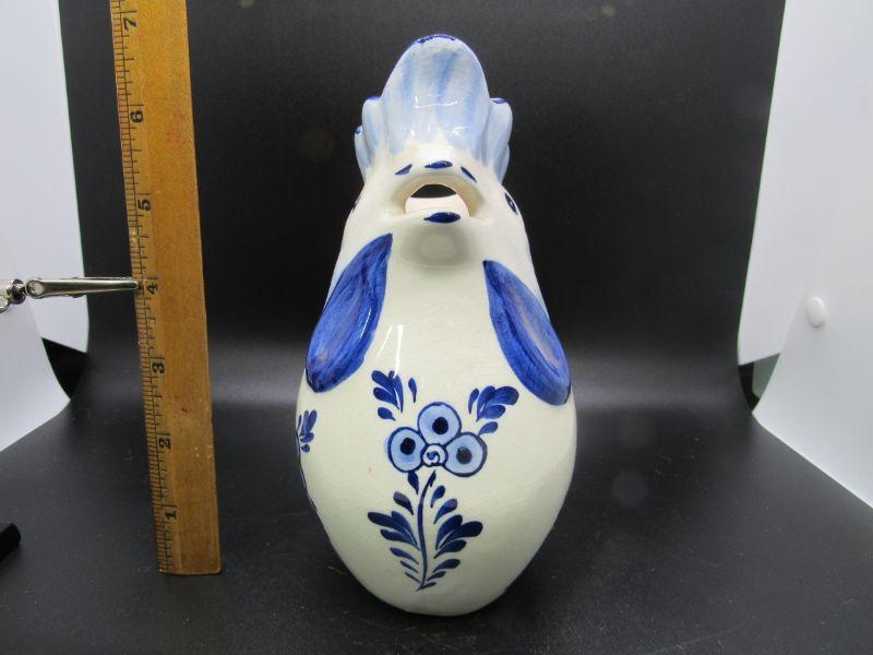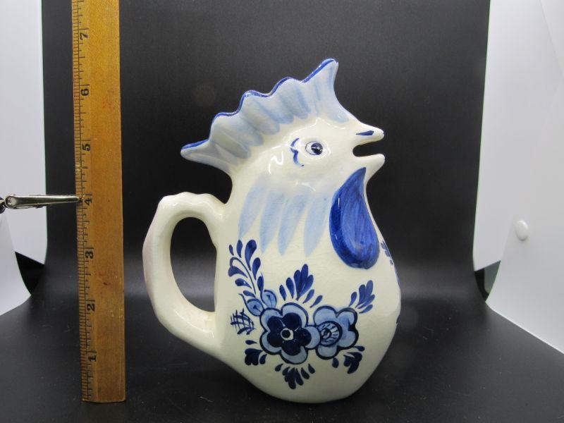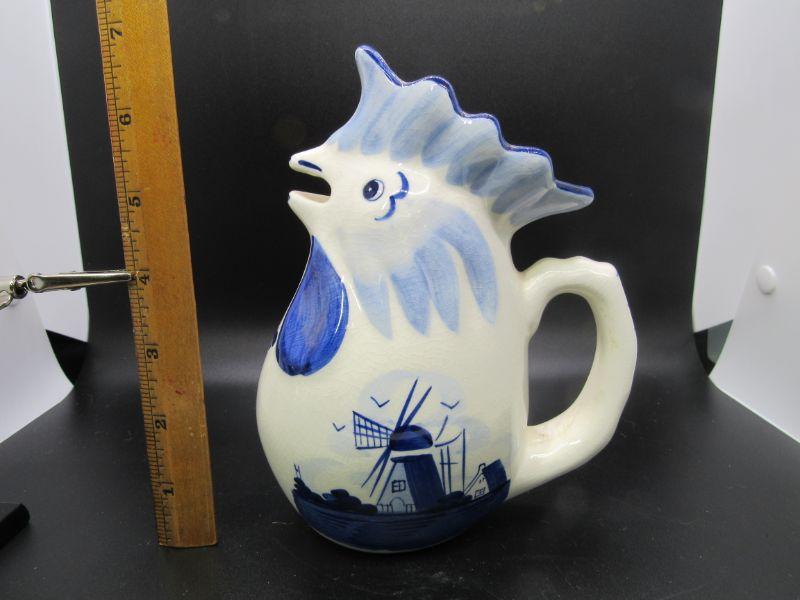 Delft blue & white Rooster Chicken small pitcher or creamer 6" tall