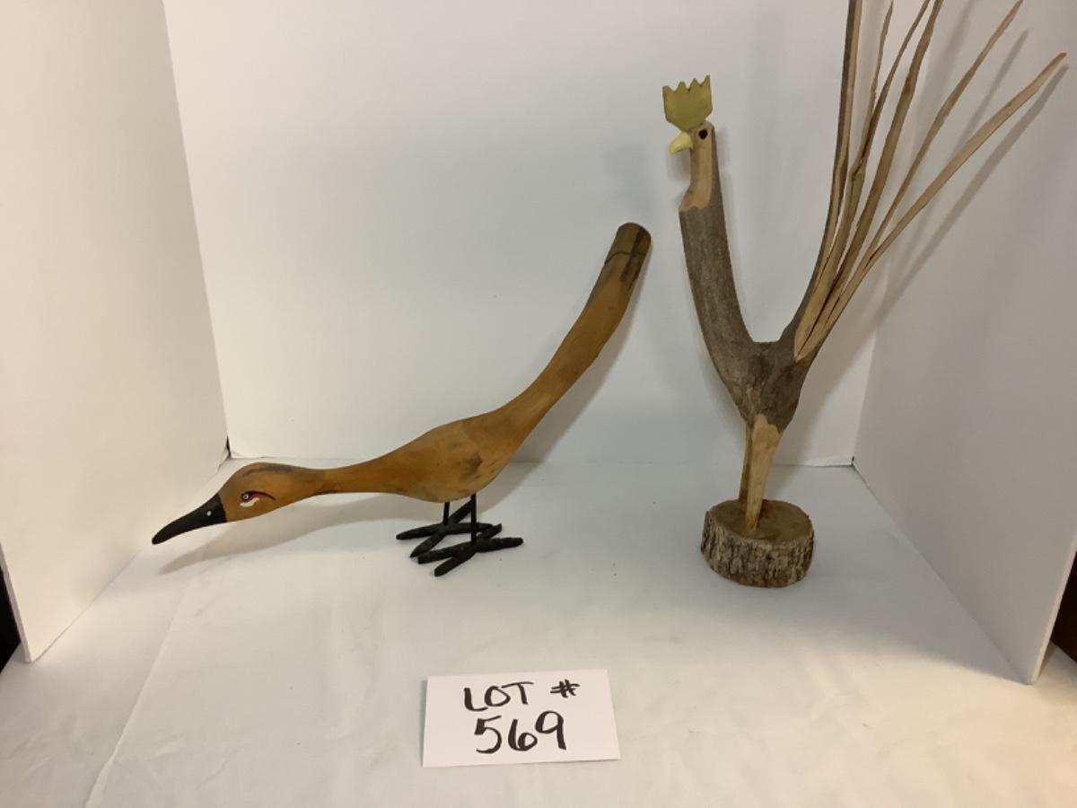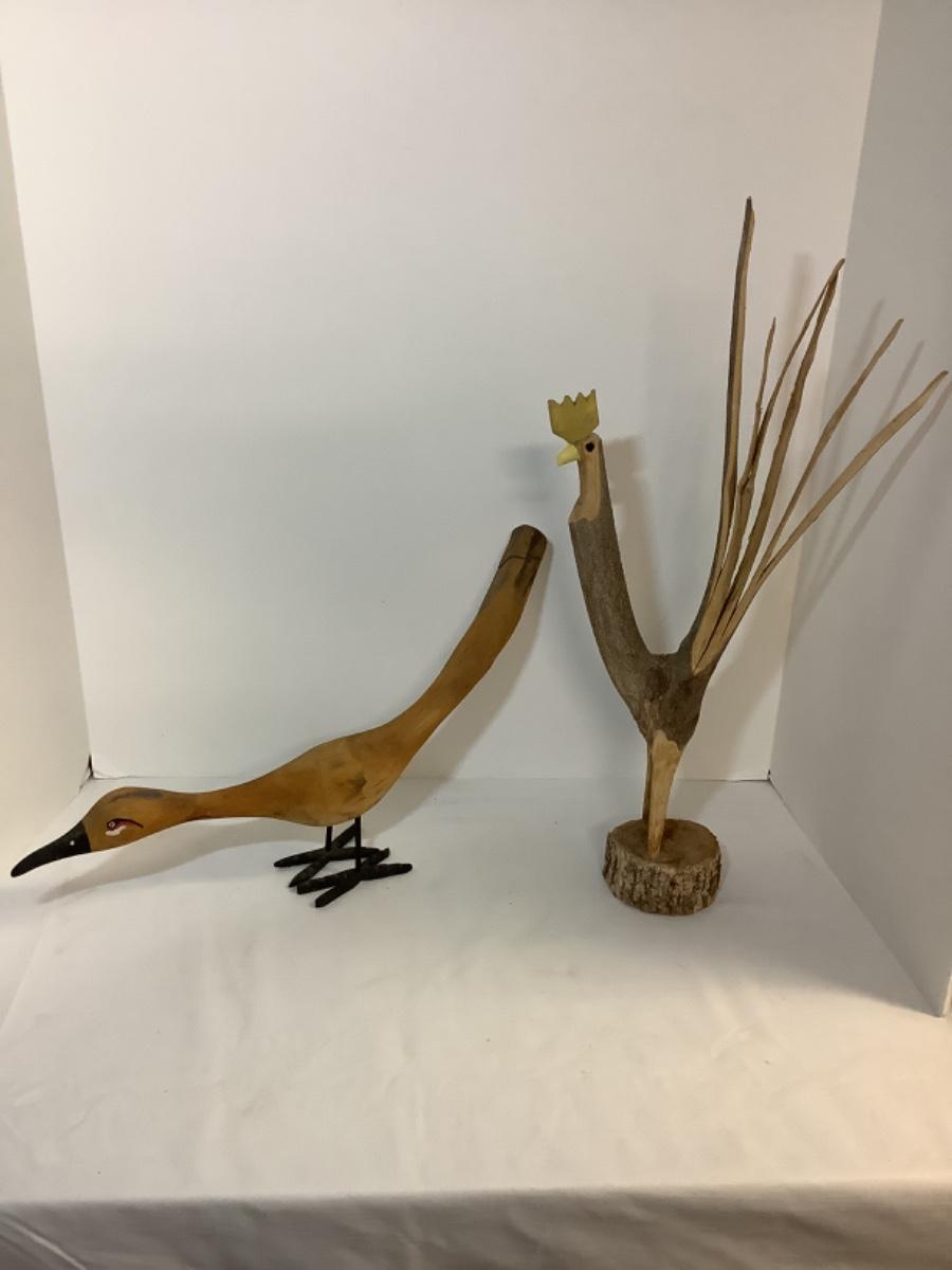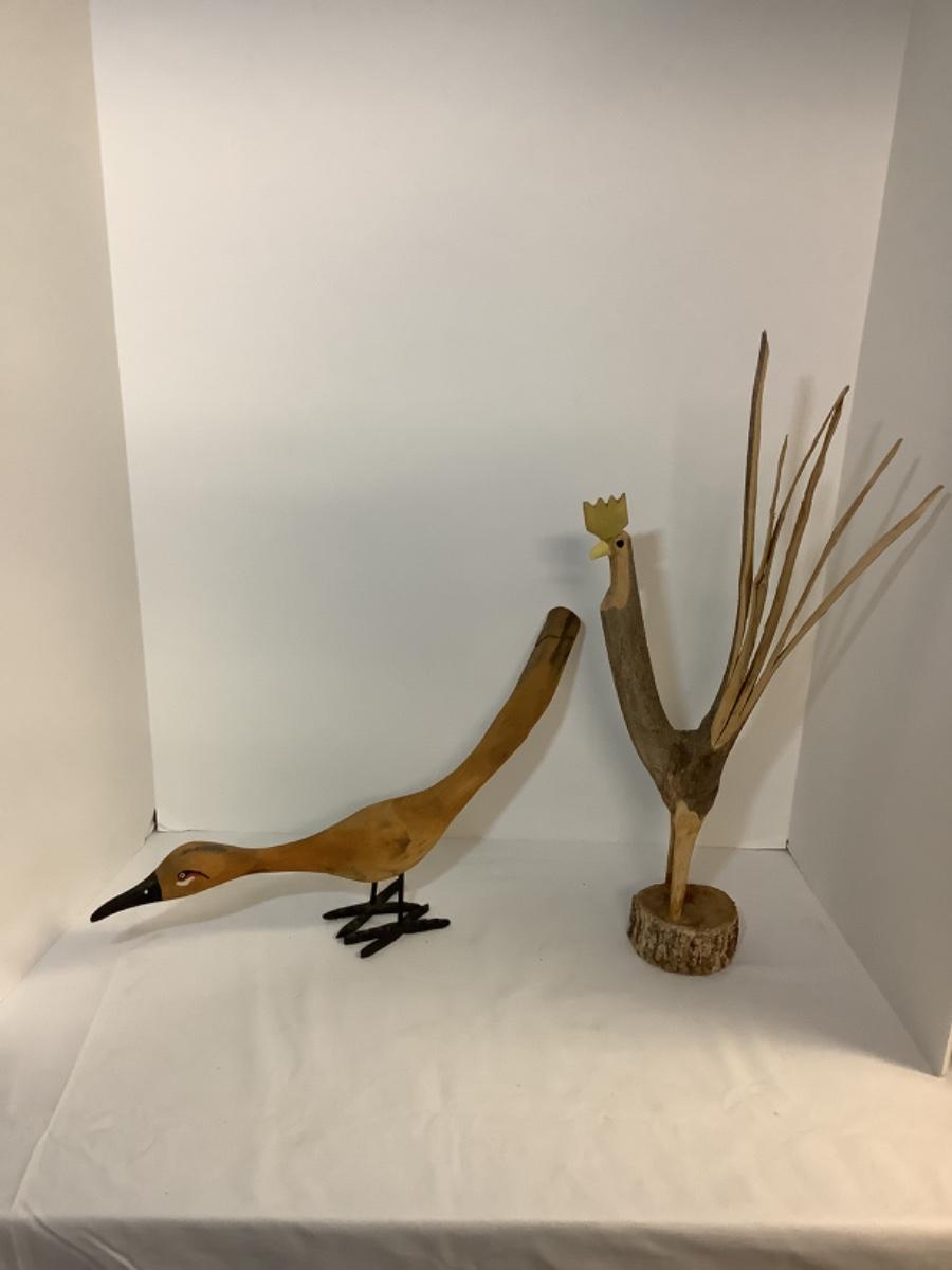 E - 569 Pair of Mid Century/Vintage Carved Wooden Bird Figures ( 1 is signed )