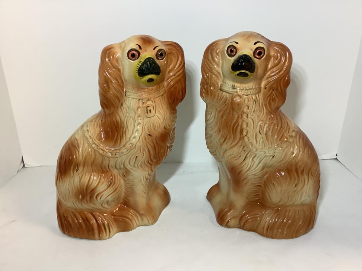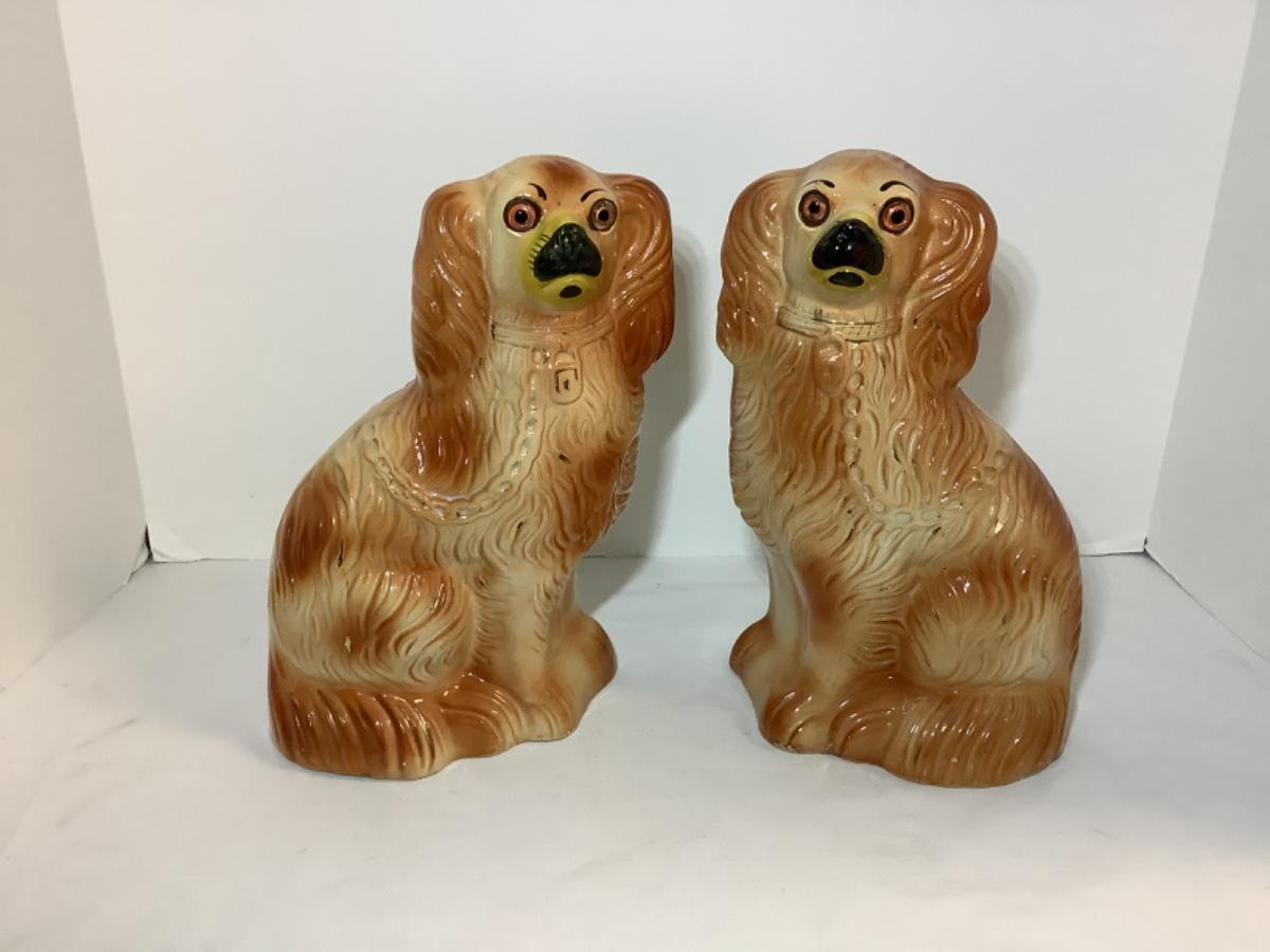 Pair of Vintage Ceramic Staffordshire Spaniel Dog Figures/Statue,