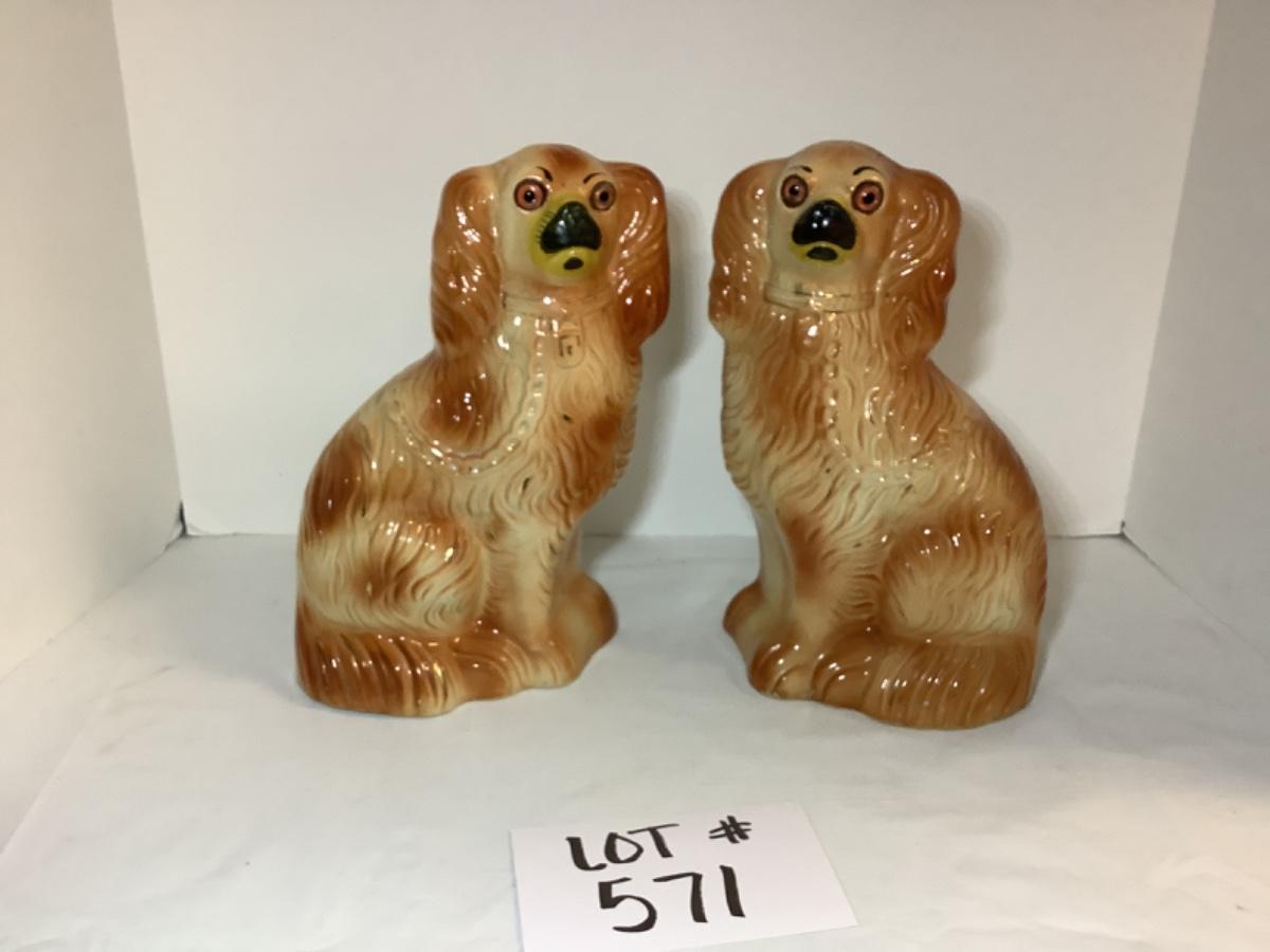 E - 571 Pair of Vintage Ceramic Staffordshire Spaniel Dog Figures/Statue
